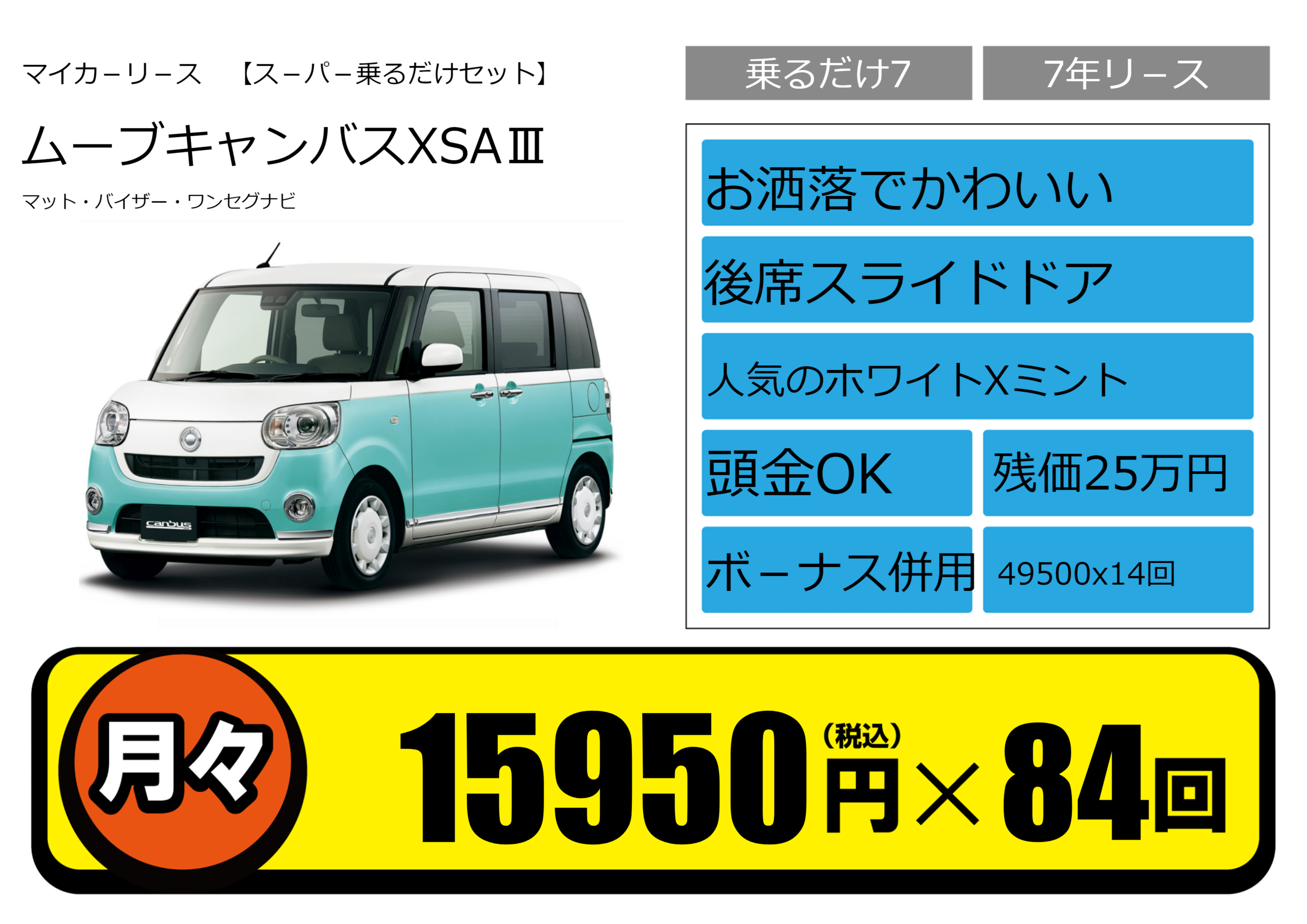 | 車名 | ムーブキャンバスXSAⅢ | グレード ミッション 排気量 |