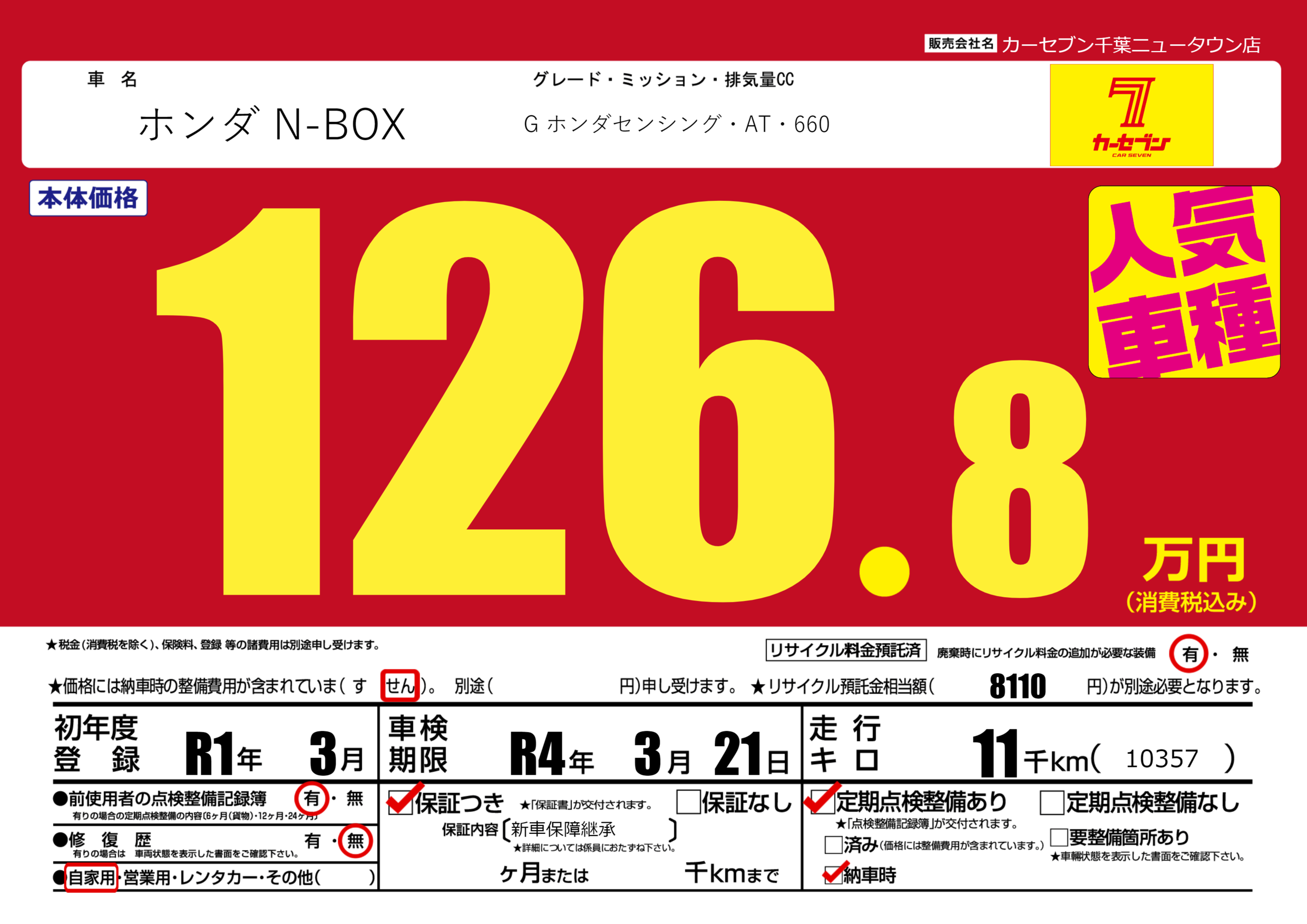 なし | 車検制限 | R4年3月21月 |