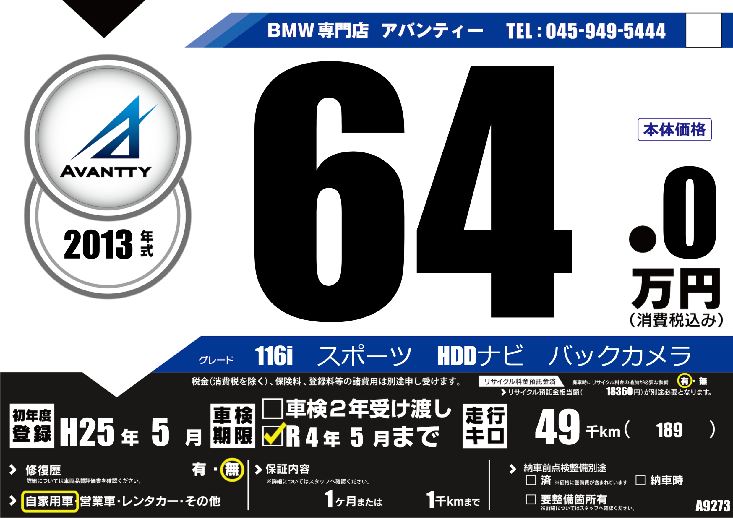 | 走行キロ | 4.9万km | 初年度登録 | H25年5月 |