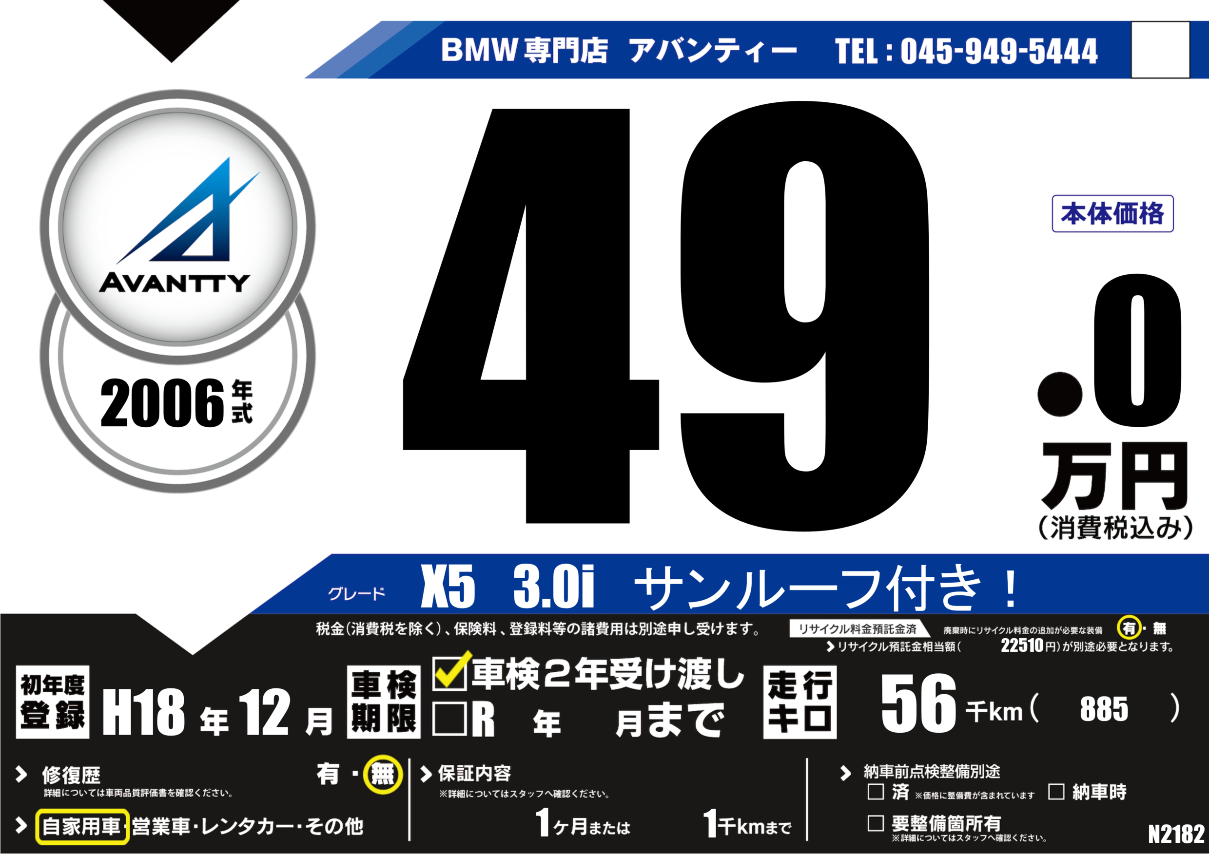 | 走行キロ | 5.6万km | 初年度登録 | H18年12月 |