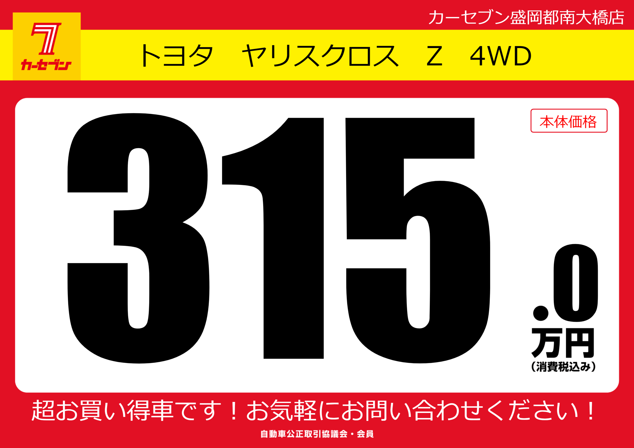| 車名 | トヨタ ヤリスクロス Z 4WD | グレード ミッション 排気量 |