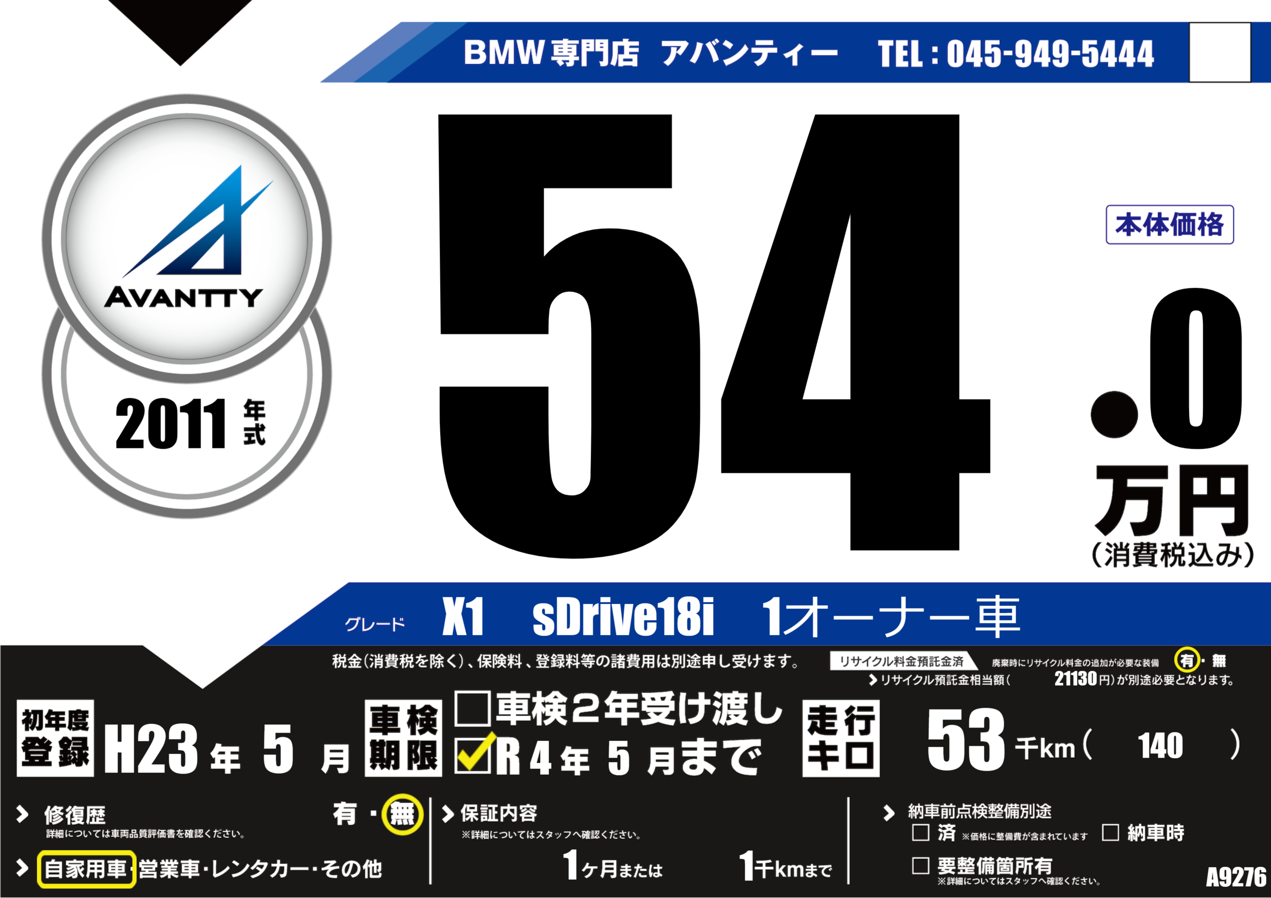 | 走行キロ | 5.3万km | 初年度登録 | H23年5月 |
