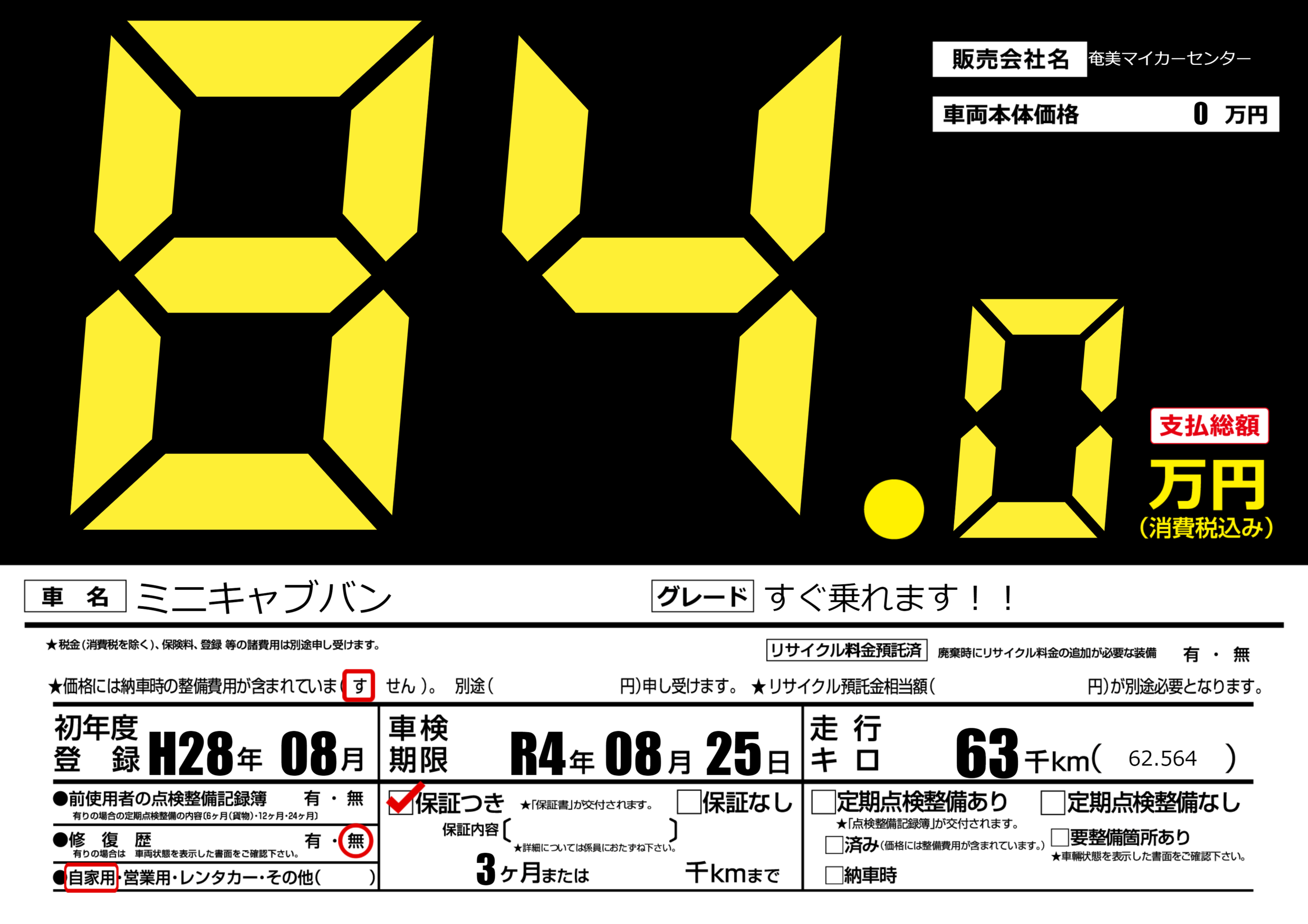 | 車名 | ミニキャブバン | グレード ミッション 排気量 |