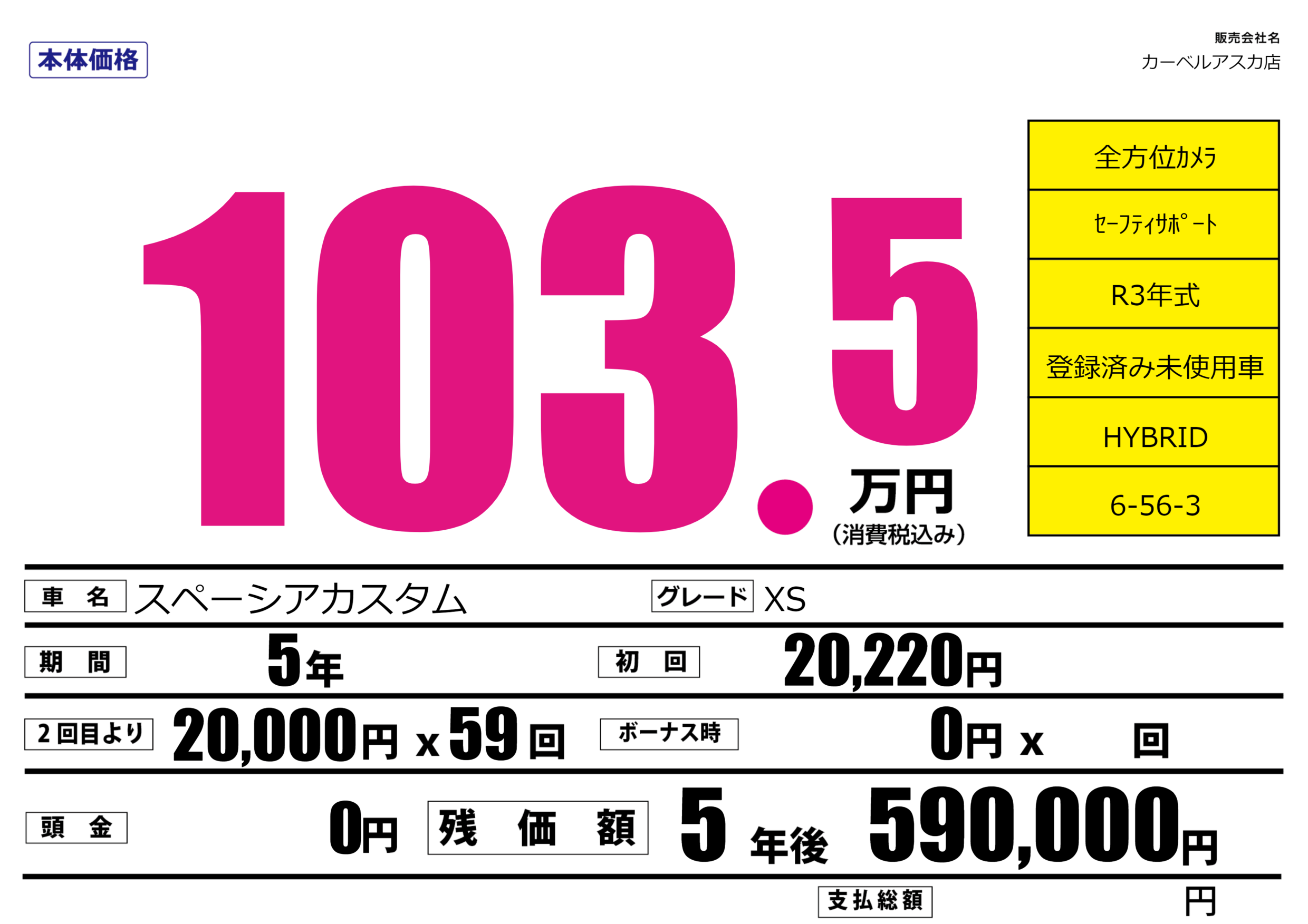 | 車名 | スペーシアカスタム | グレード ミッション 排気量 |