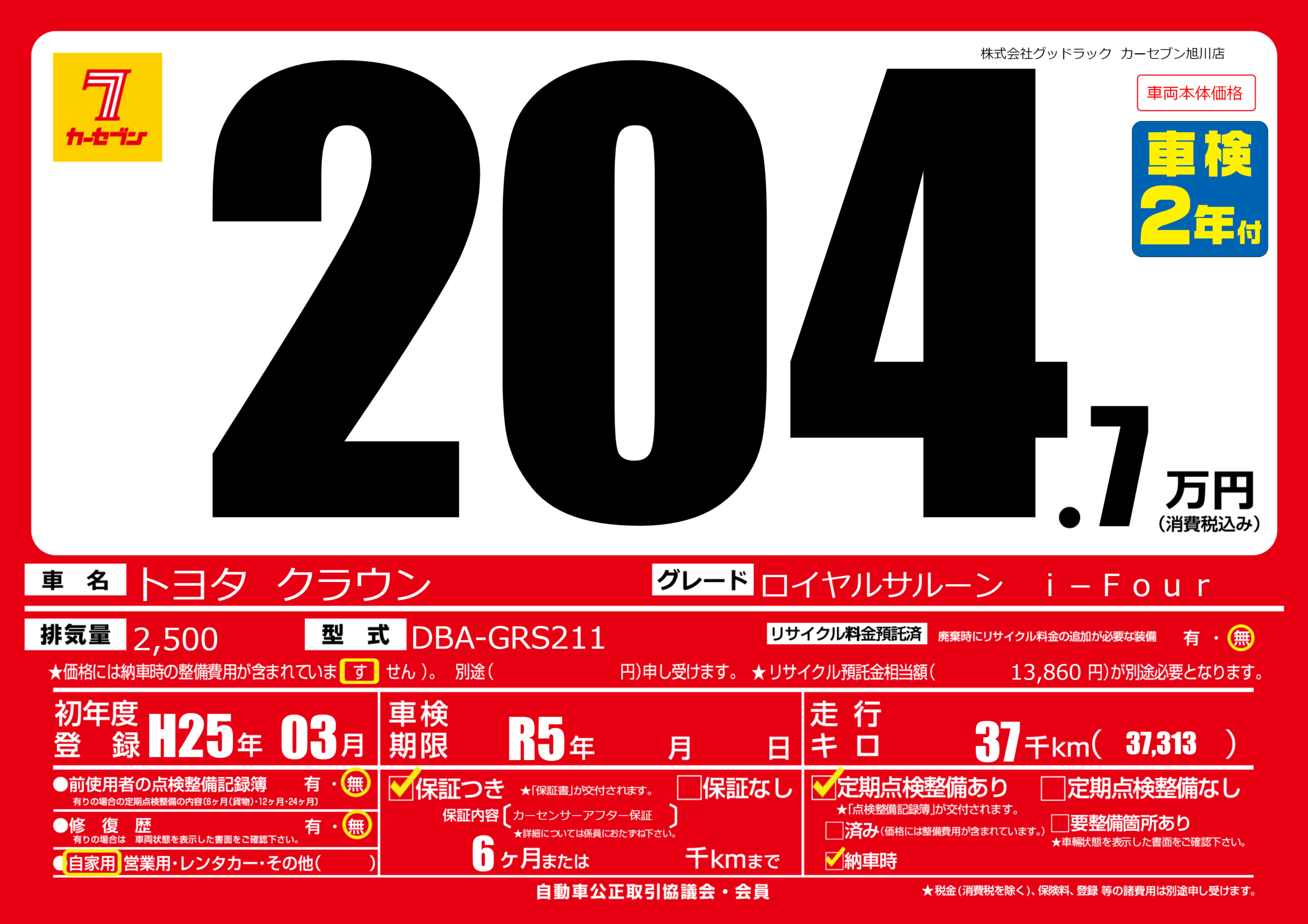 | 走行キロ | 3.7万km | ||