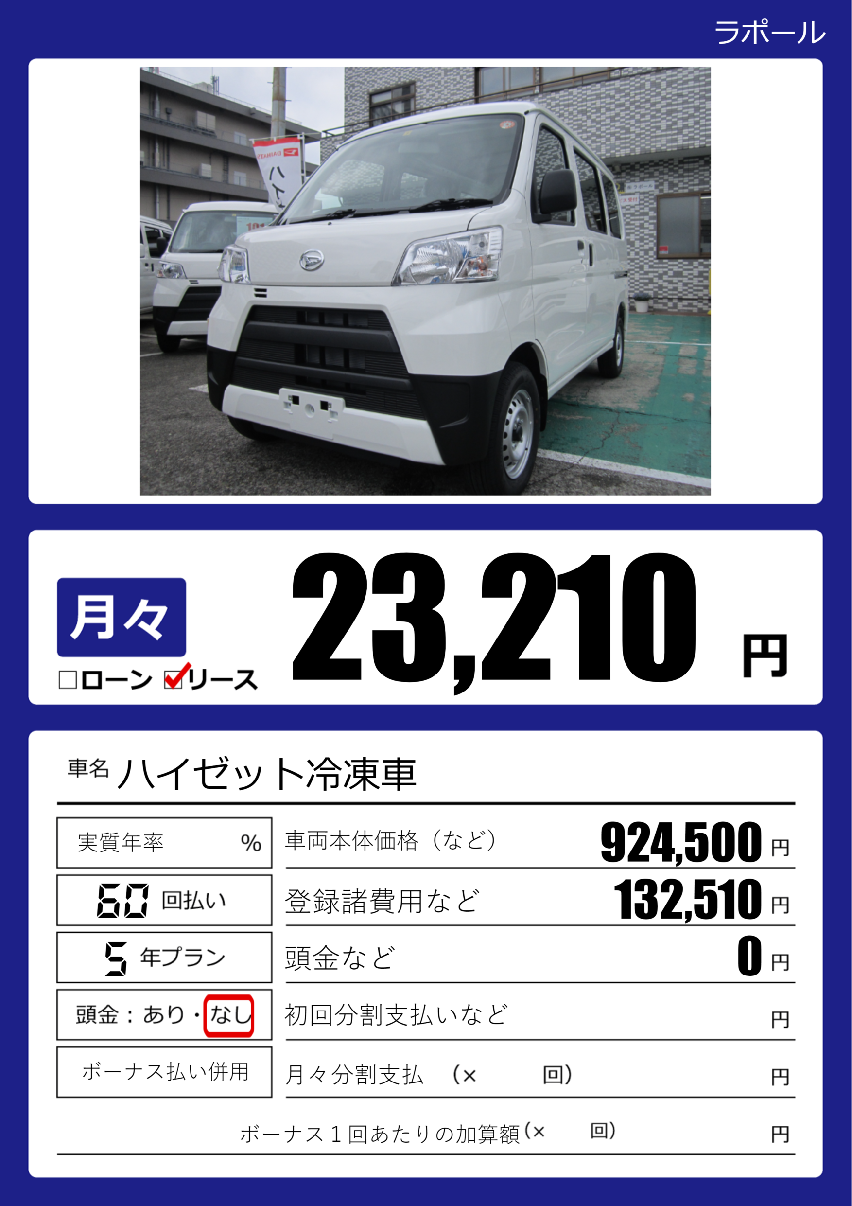 | 車名 | ハイゼット冷凍車 | グレード ミッション 排気量 |