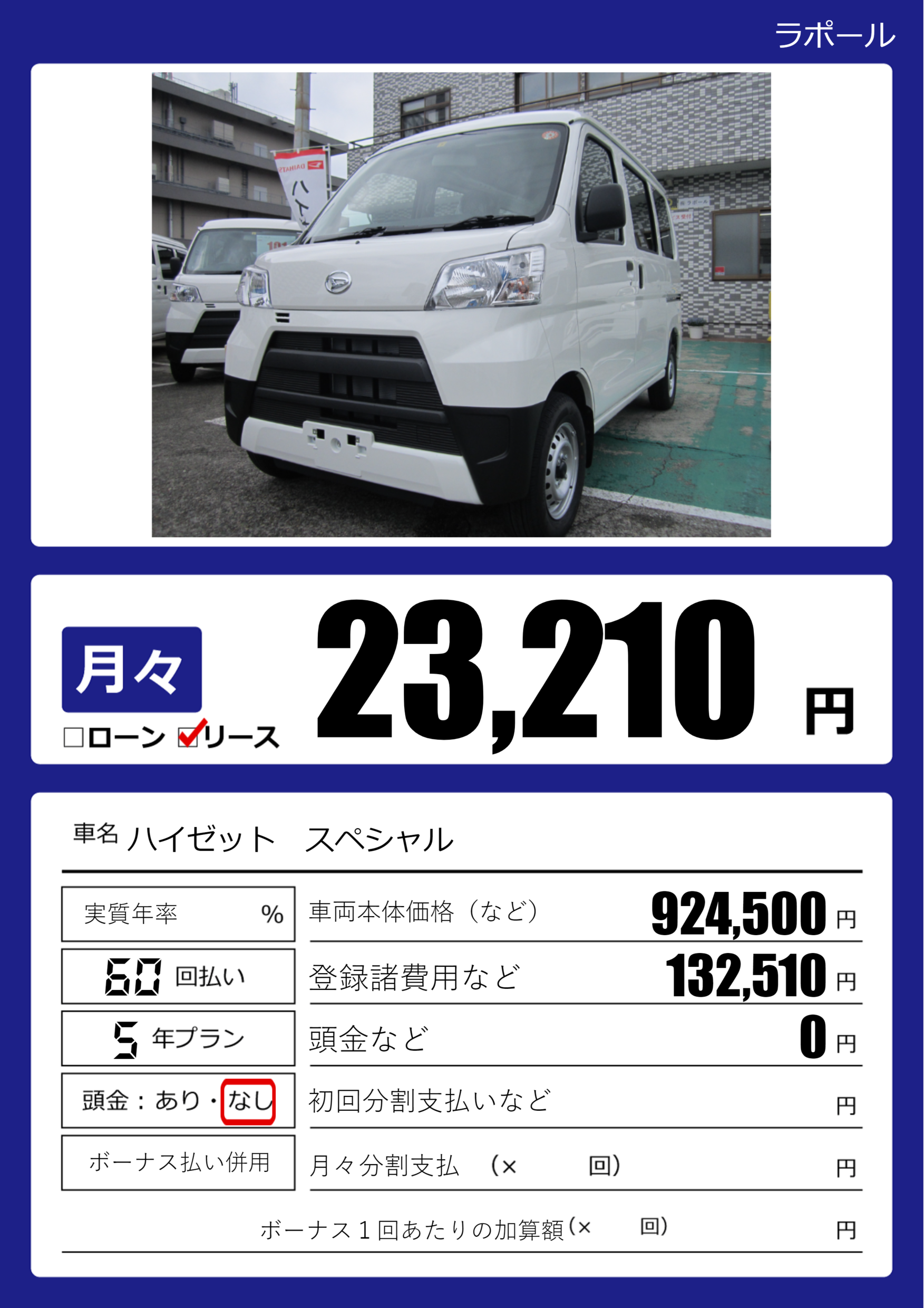 | 車名 | ハイゼット スペシャル | グレード ミッション 排気量 |