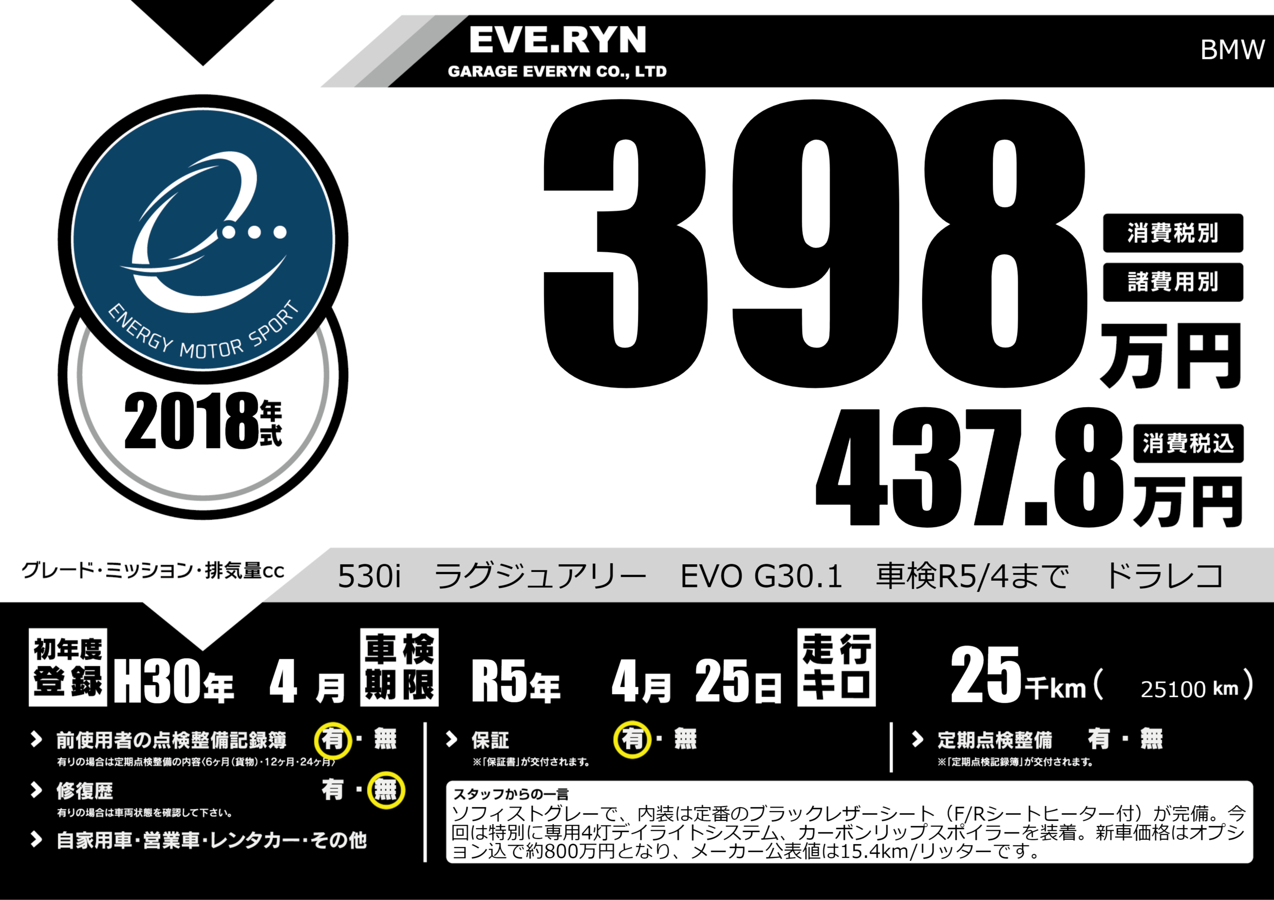 530i ラグジュアリー EVO G30.1 車検R5/4まで ドラレコ |
