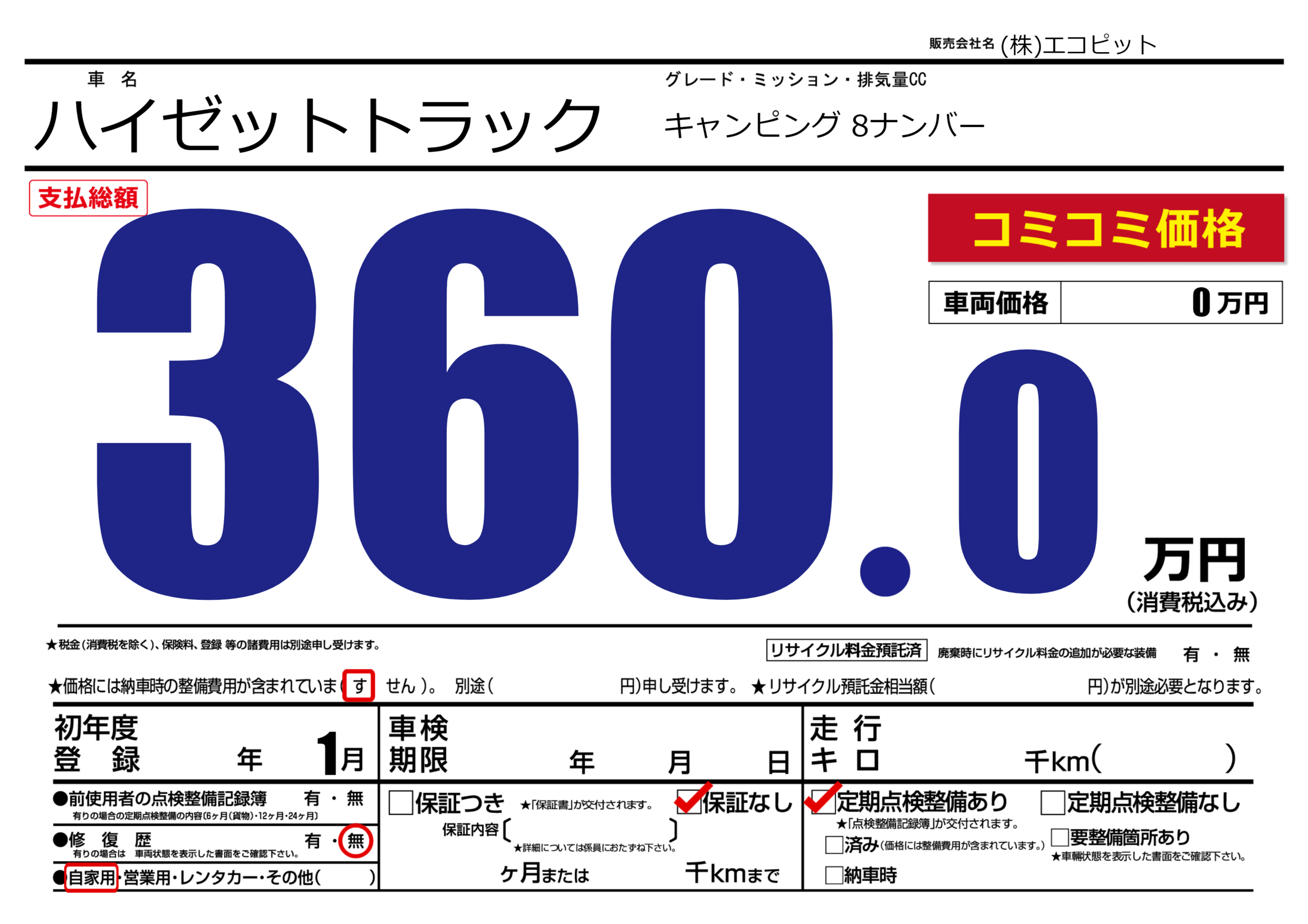 | 定期点検整備 | 定期点検整備あり | ||