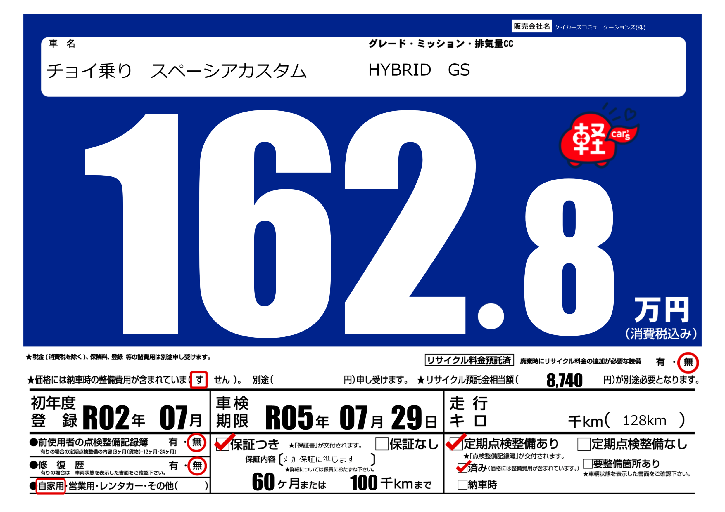 | 定期点検整備 | 定期点検整備あり 定期点検整備済み | ||