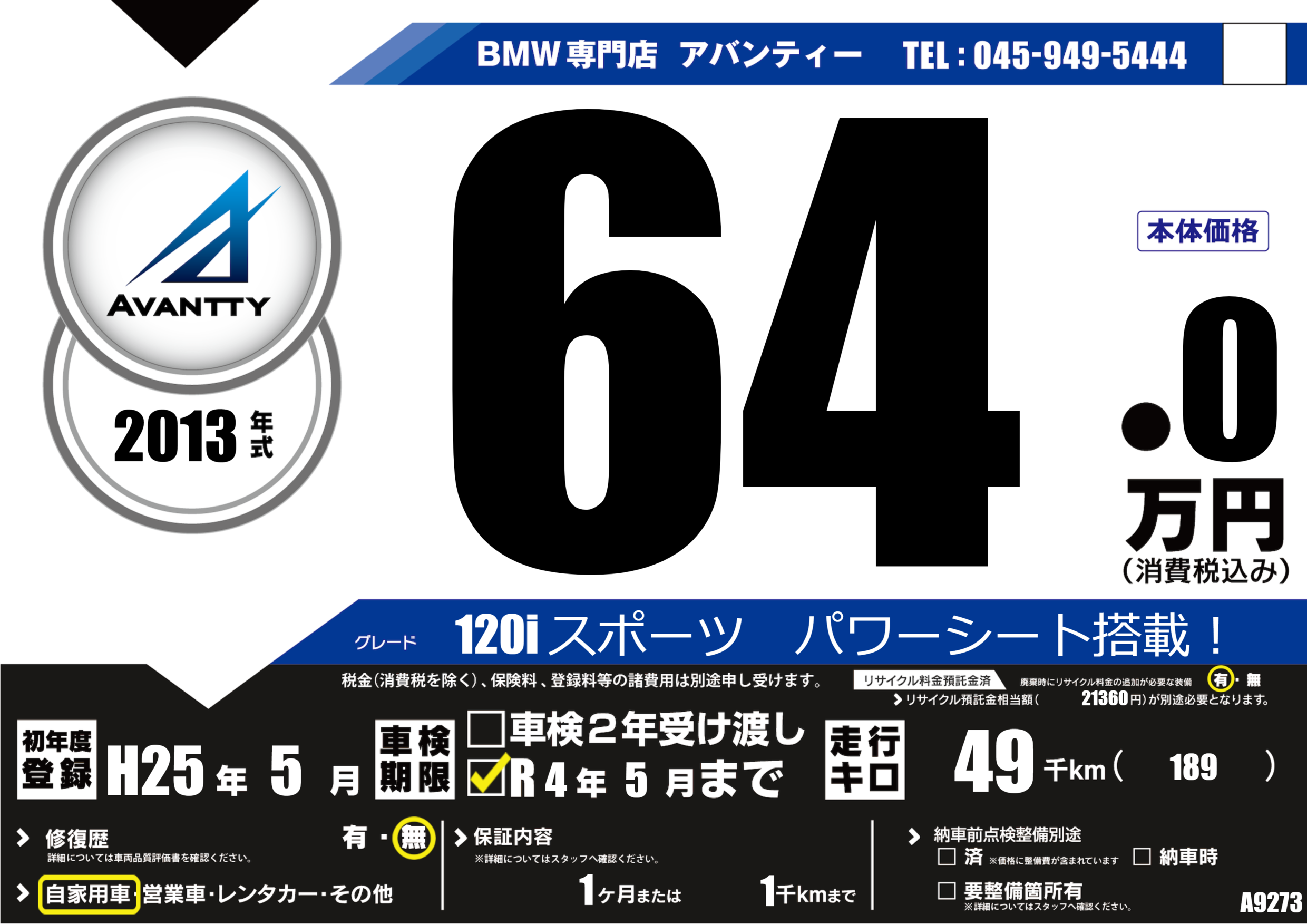 | 走行キロ | 4.9万km | 初年度登録 | H25年5月 |