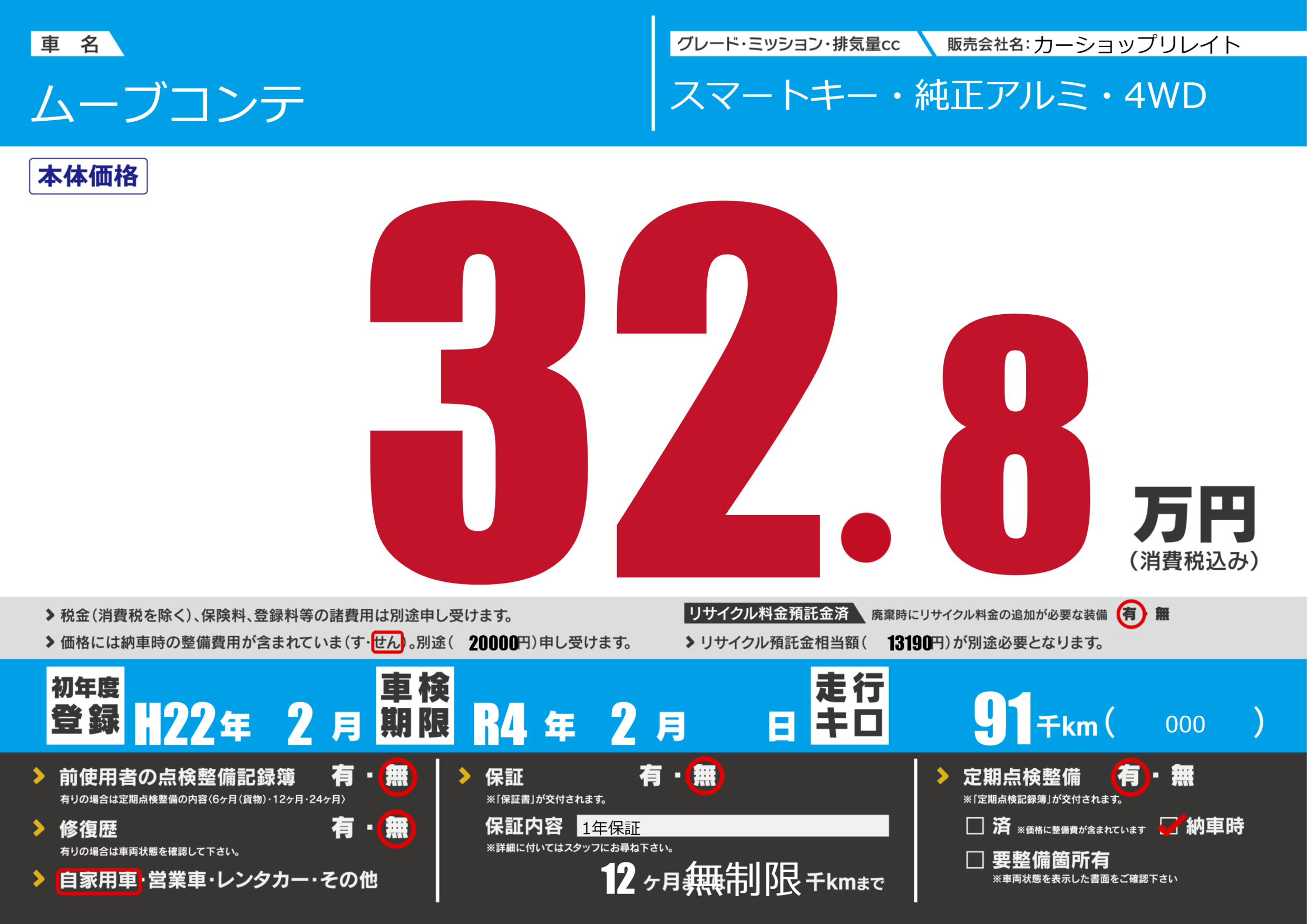 | 車検制限 | R4年 2月 - 日 | ||