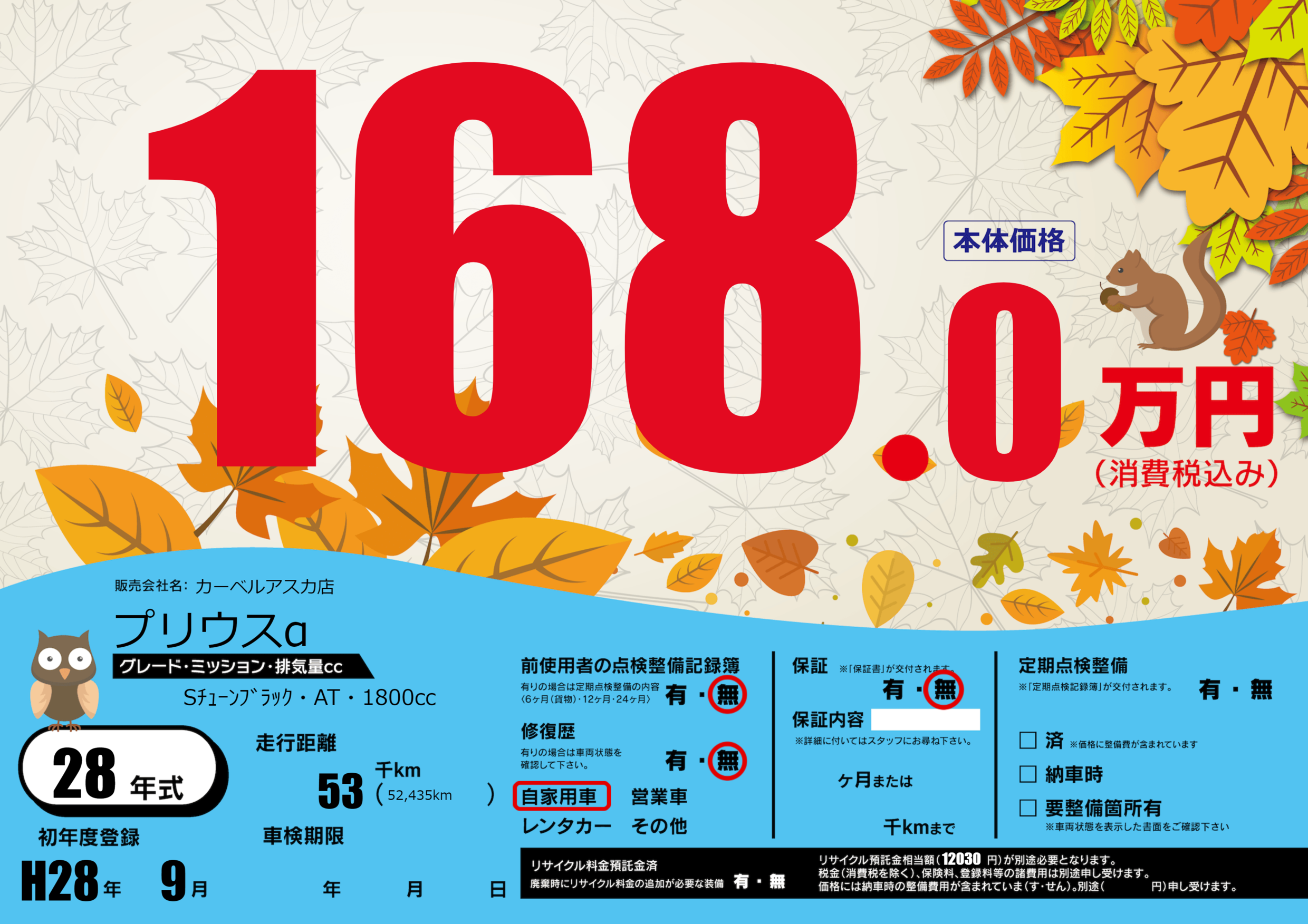 | 走行キロ | 5.3万km | 初年度登録 | H28年9月 |