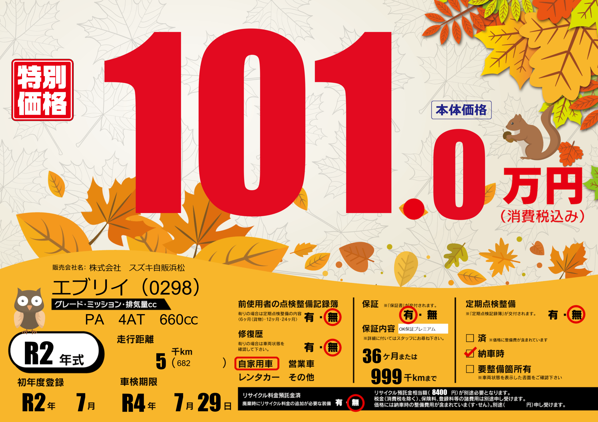 | 車名 | エブリイ(0298) | グレード ミッション 排気量 |