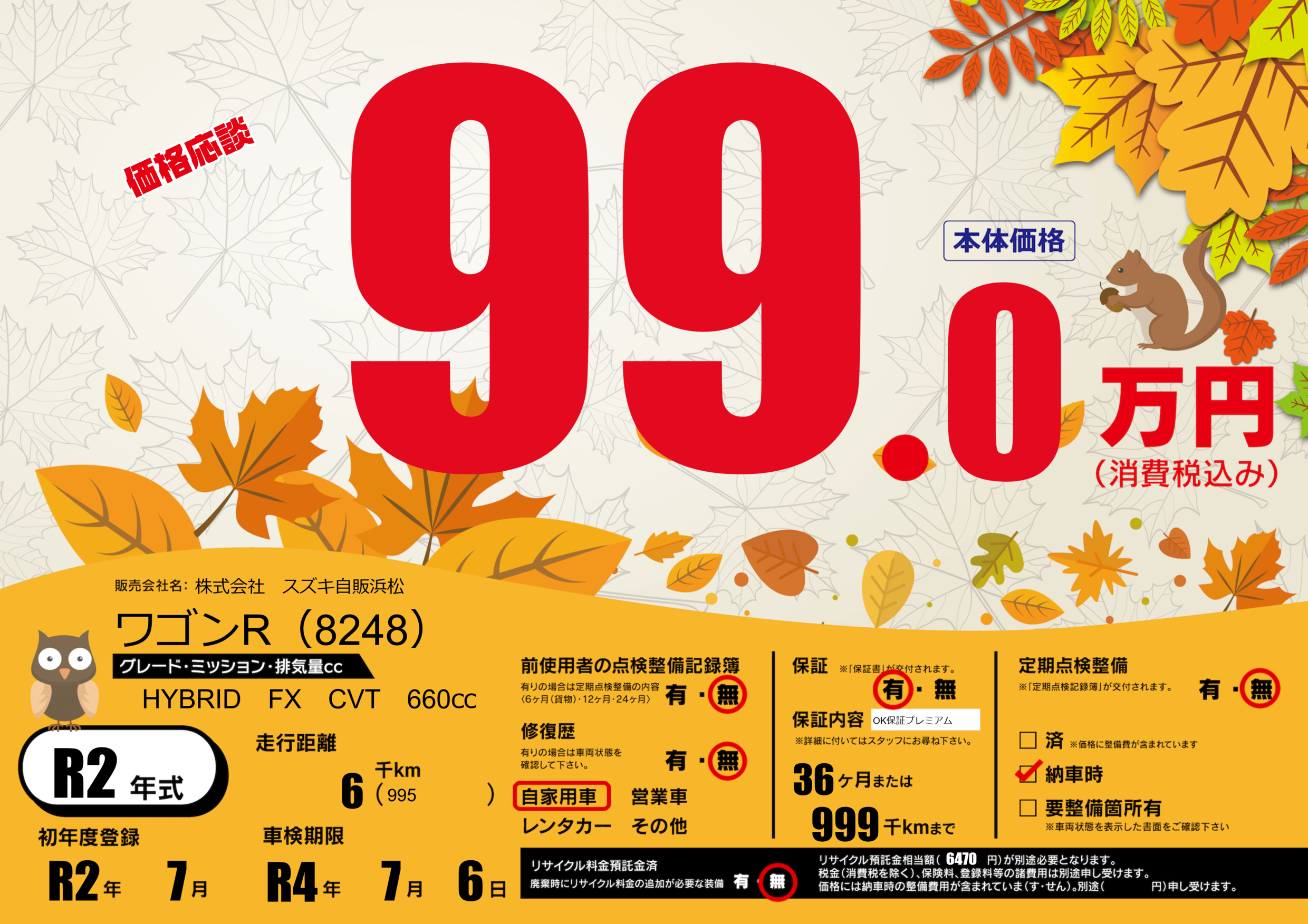 | 車名 | ワゴンR(8248) | グレード ミッション 排気量 |