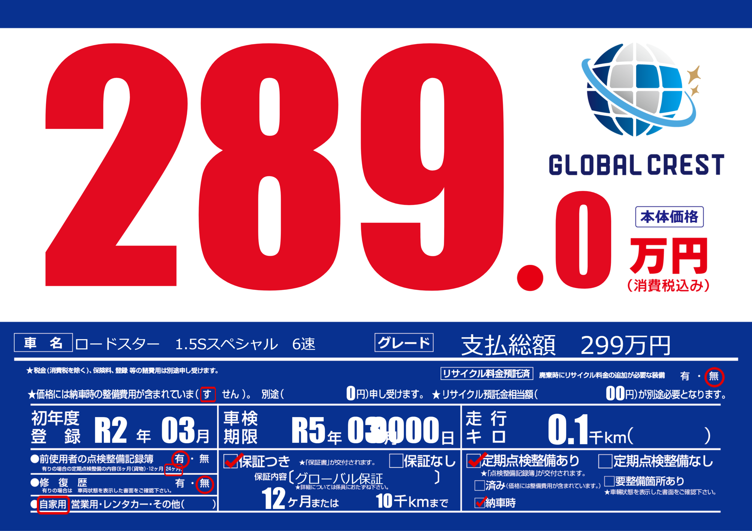 あり | 車検制限 | R5年03月0000月 |