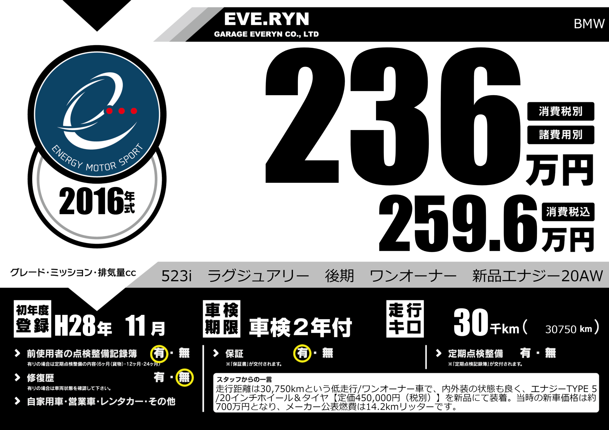 523i ラグジュアリー 後期 ワンオーナー 新品エナジー20AW |