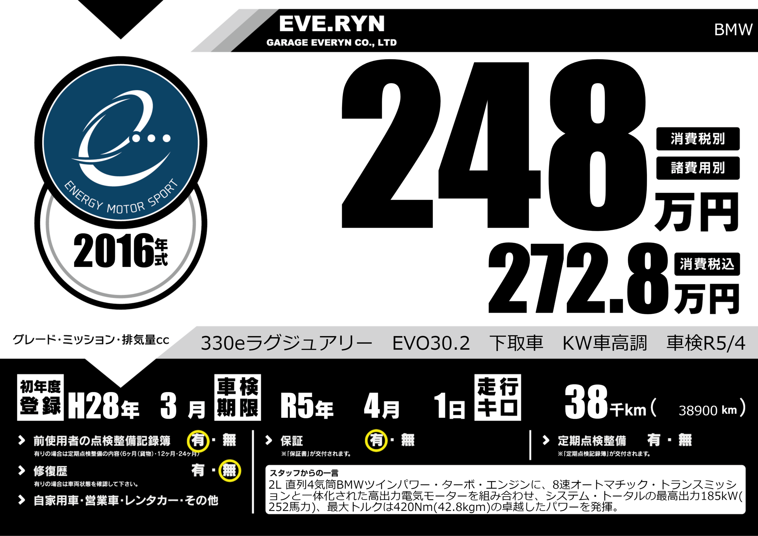 330eラグジュアリー EVO30.2 下取車 KW車高調 車検R5/4 |