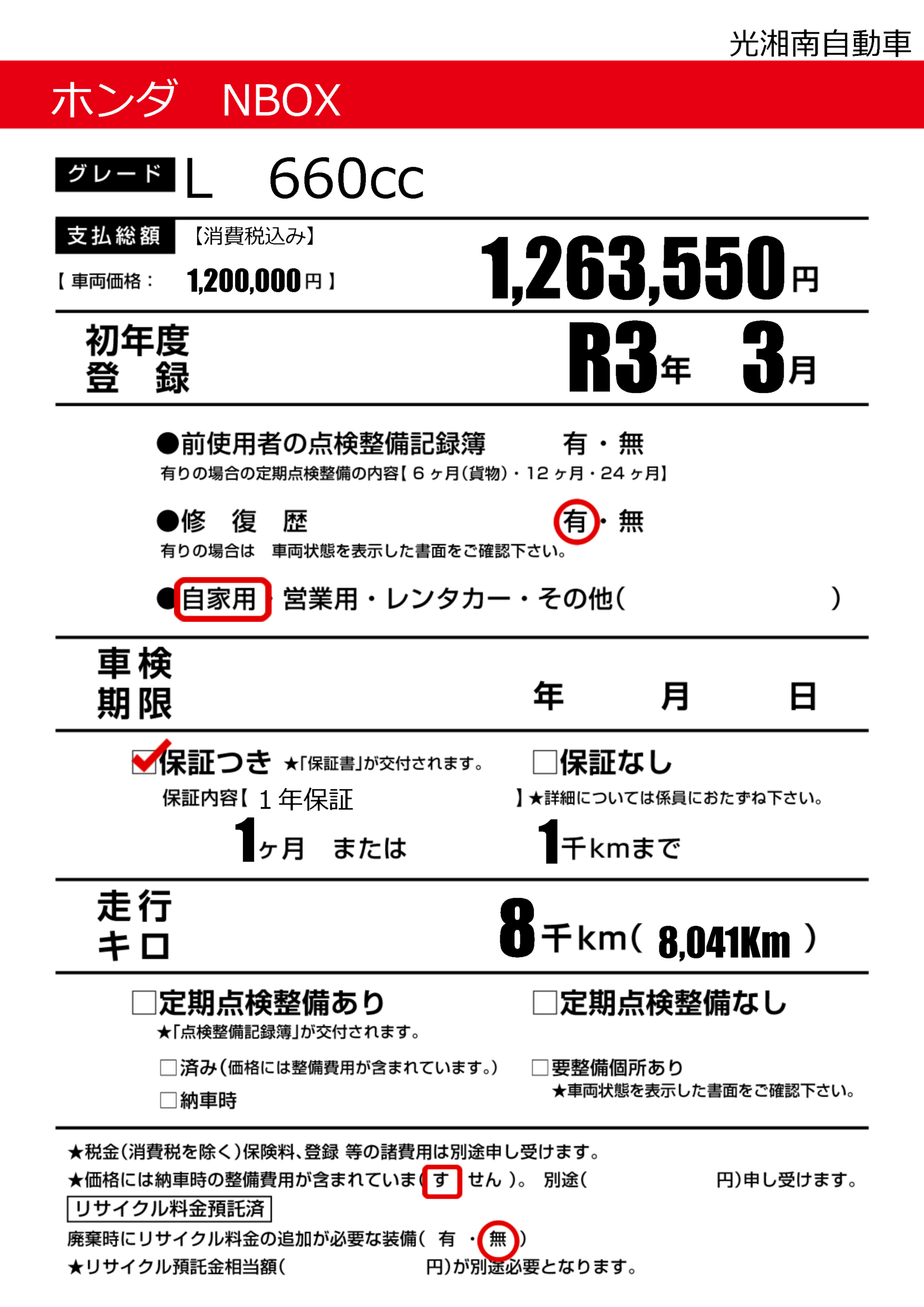 | 走行キロ | 0.8万km | 初年度登録 | R3年3月 |