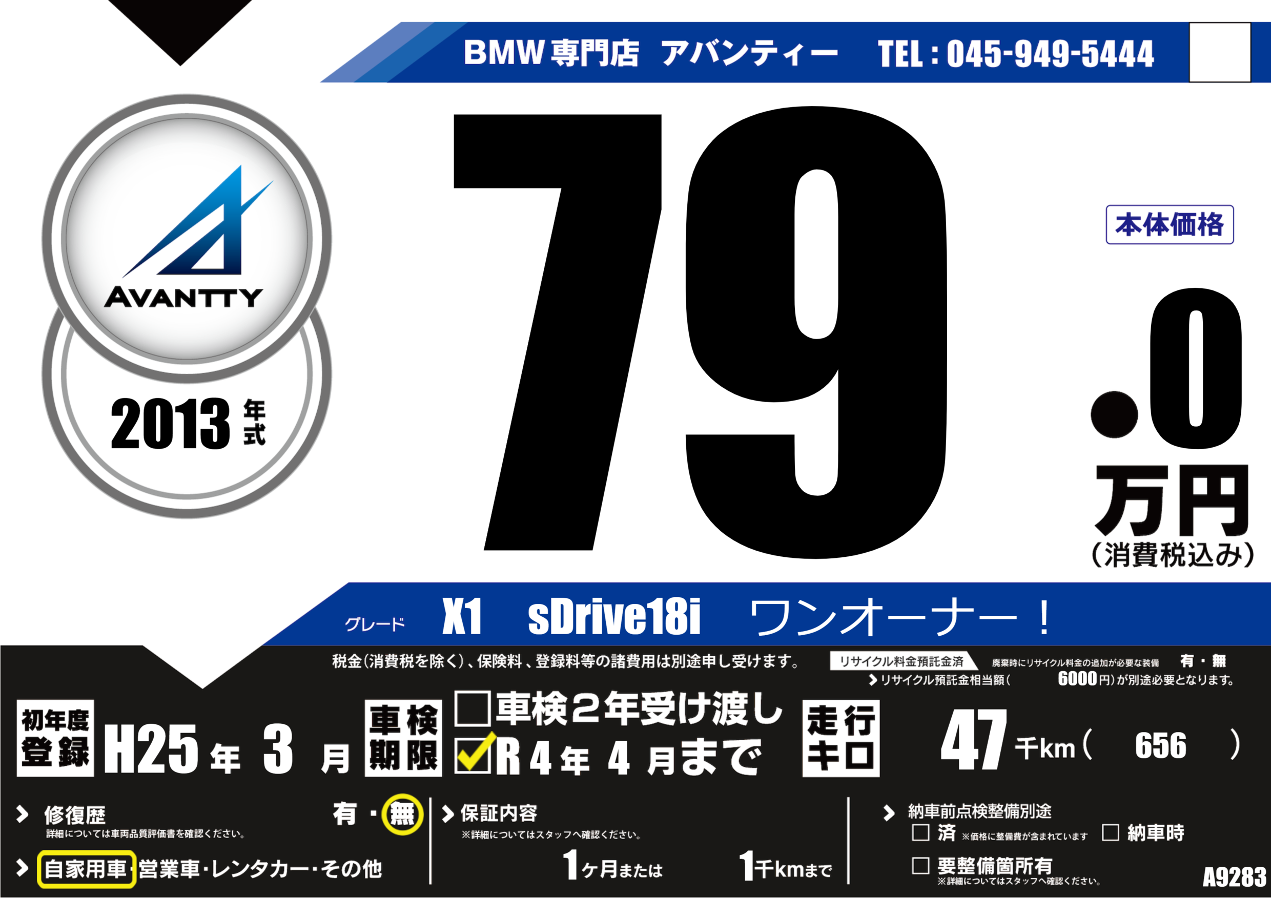 | 走行キロ | 4.7万km | 初年度登録 | H25年3月 |