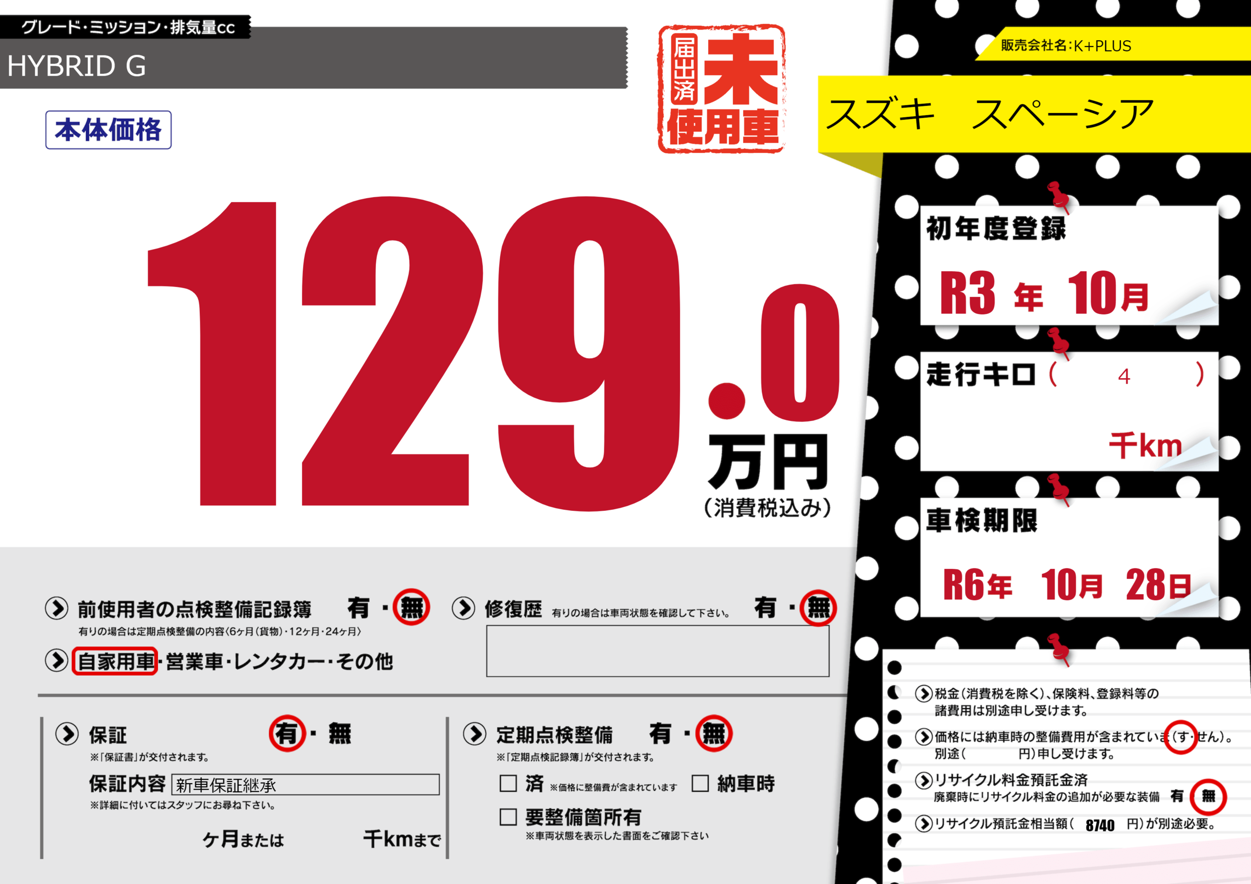 | 走行キロ | - | 初年度登録 | R3年10月 |