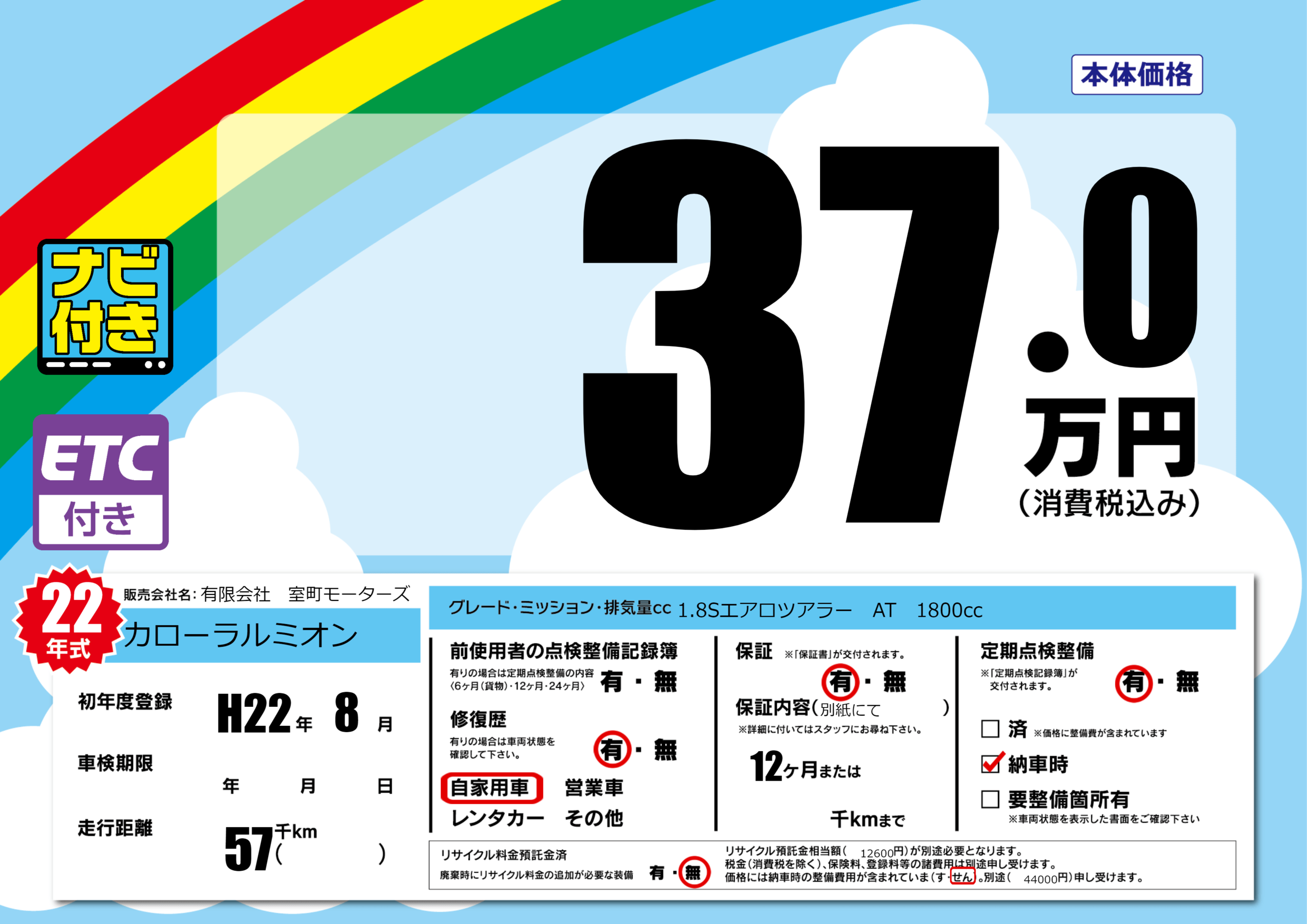 | 走行キロ | 5.7万km | 初年度登録 | H22年8月 |