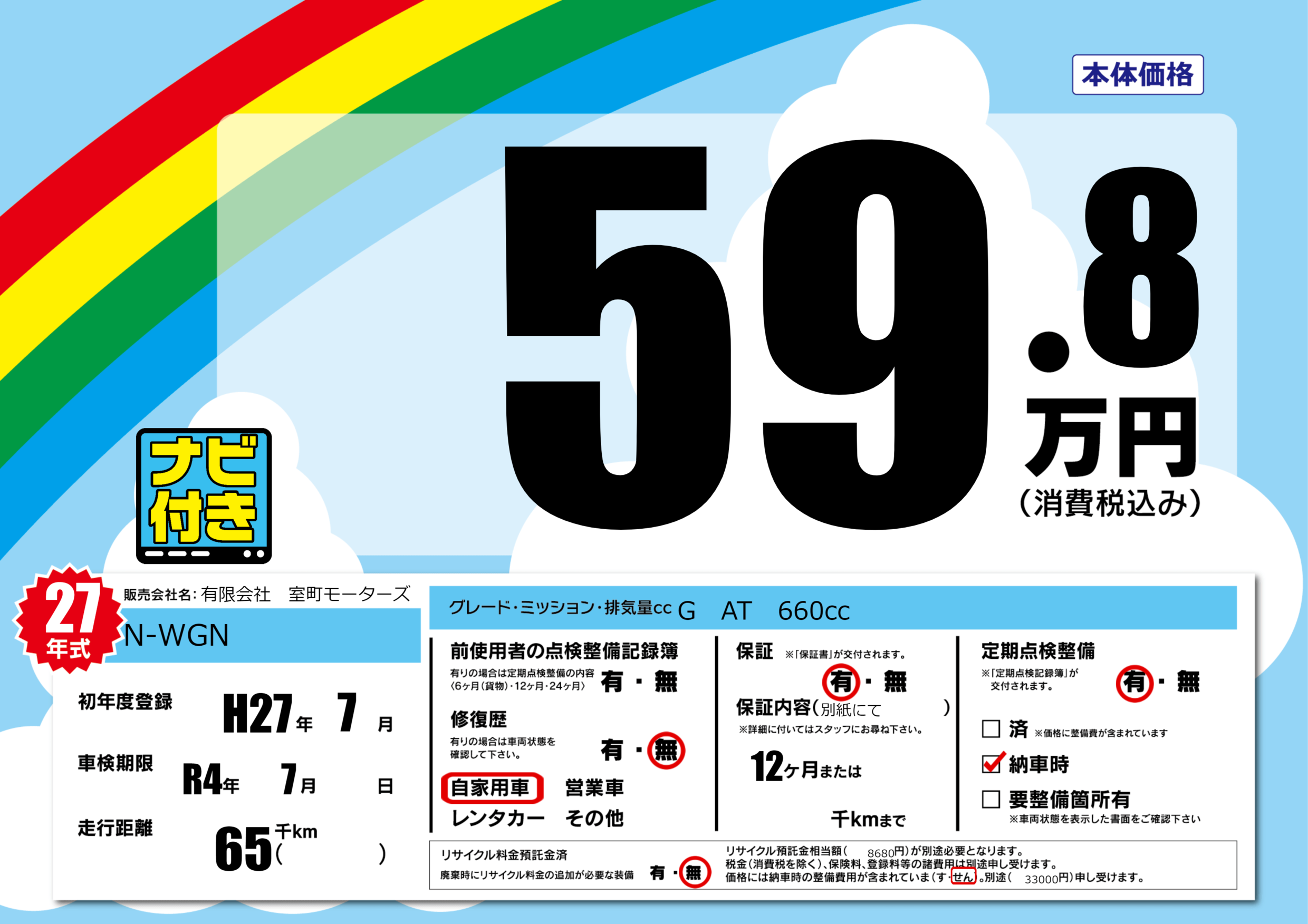 | 車名 | N-WGN | グレード ミッション 排気量 |