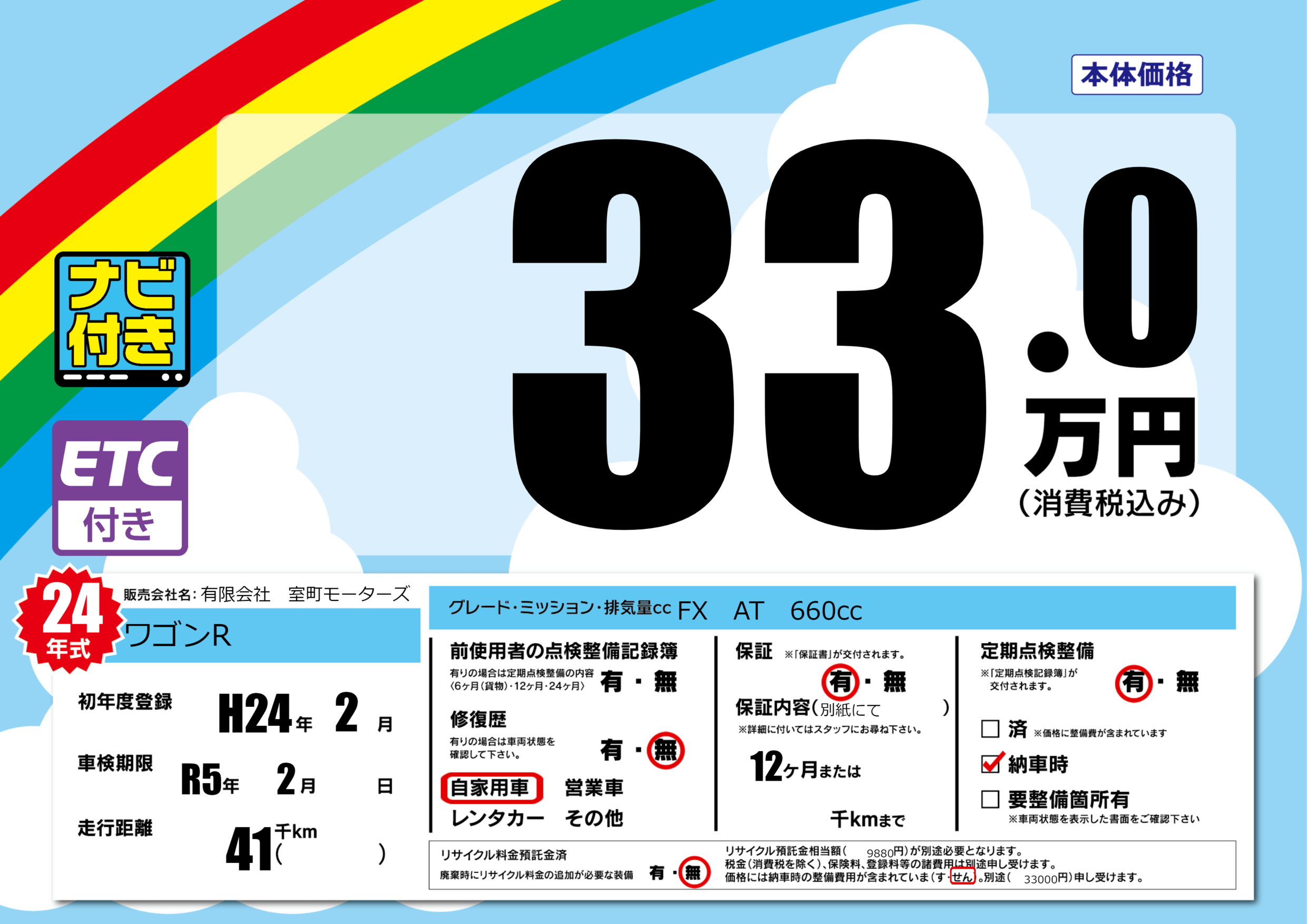 | 車検制限 | R5年 2月 - 日 | ||