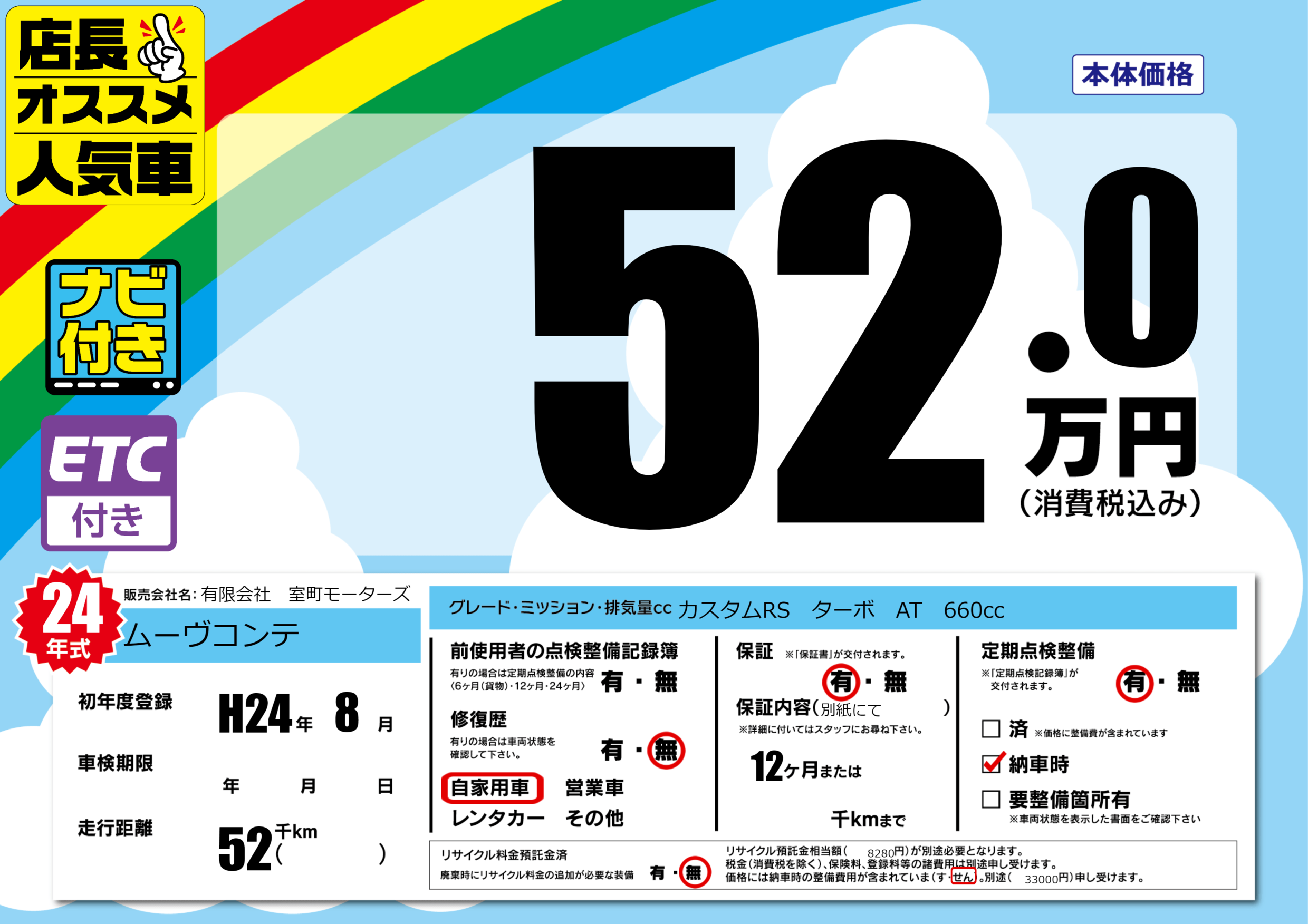 | 車名 | ムーヴコンテ | グレード ミッション 排気量 |