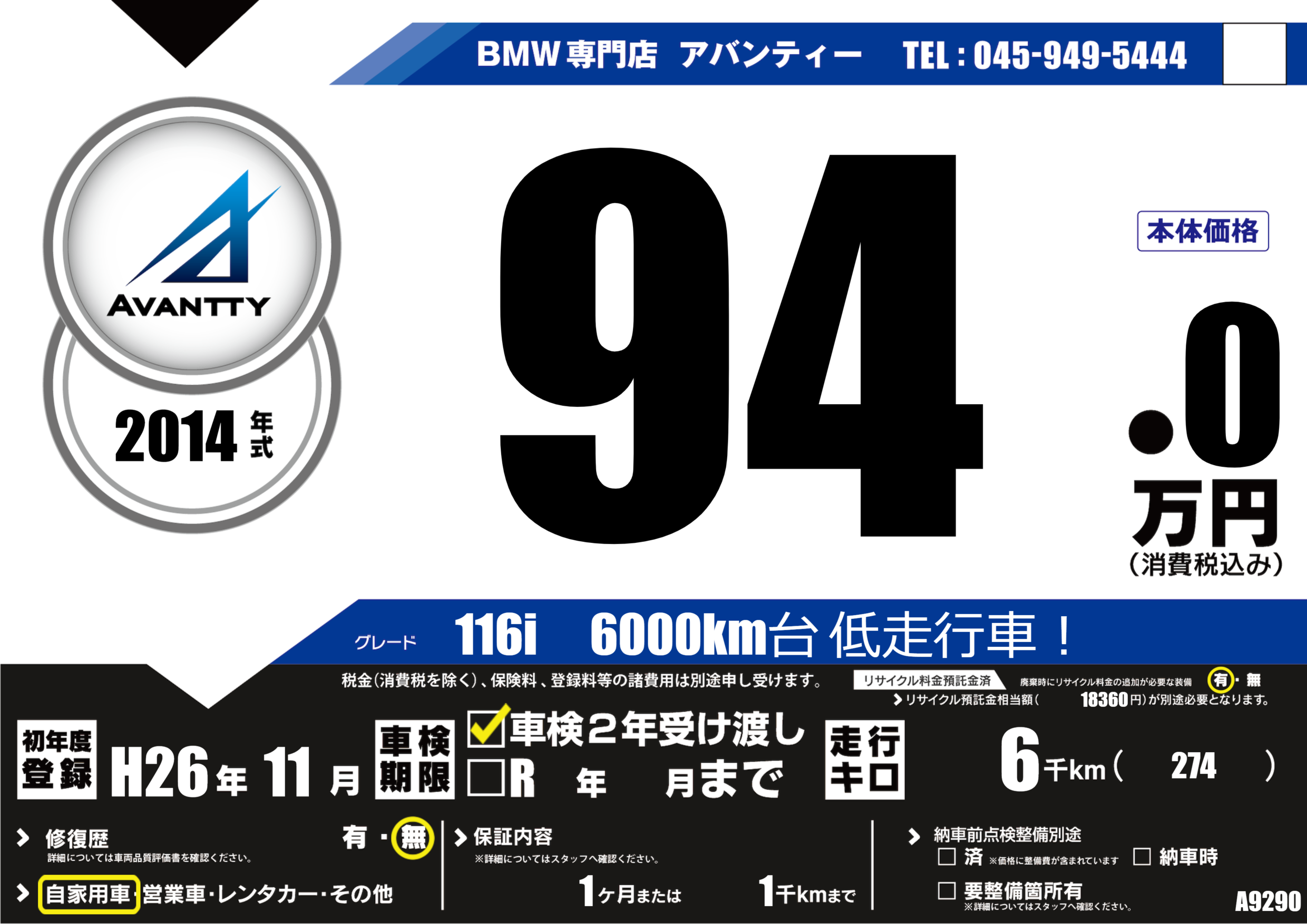 | 走行キロ | 0.6万km | 初年度登録 | H26年11月 |