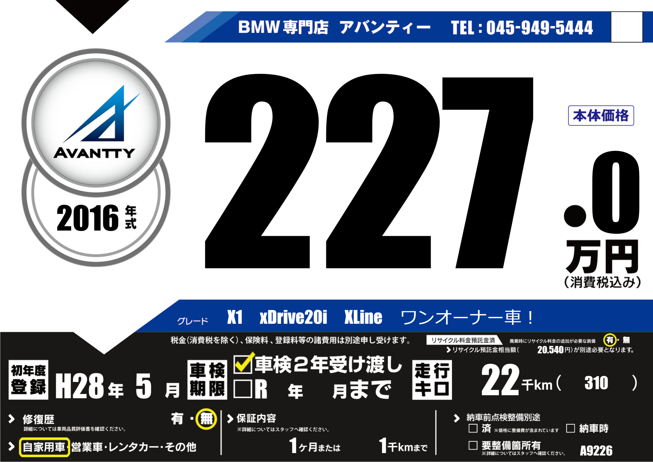 | 走行キロ | 2.2万km | 初年度登録 | H28年5月 |