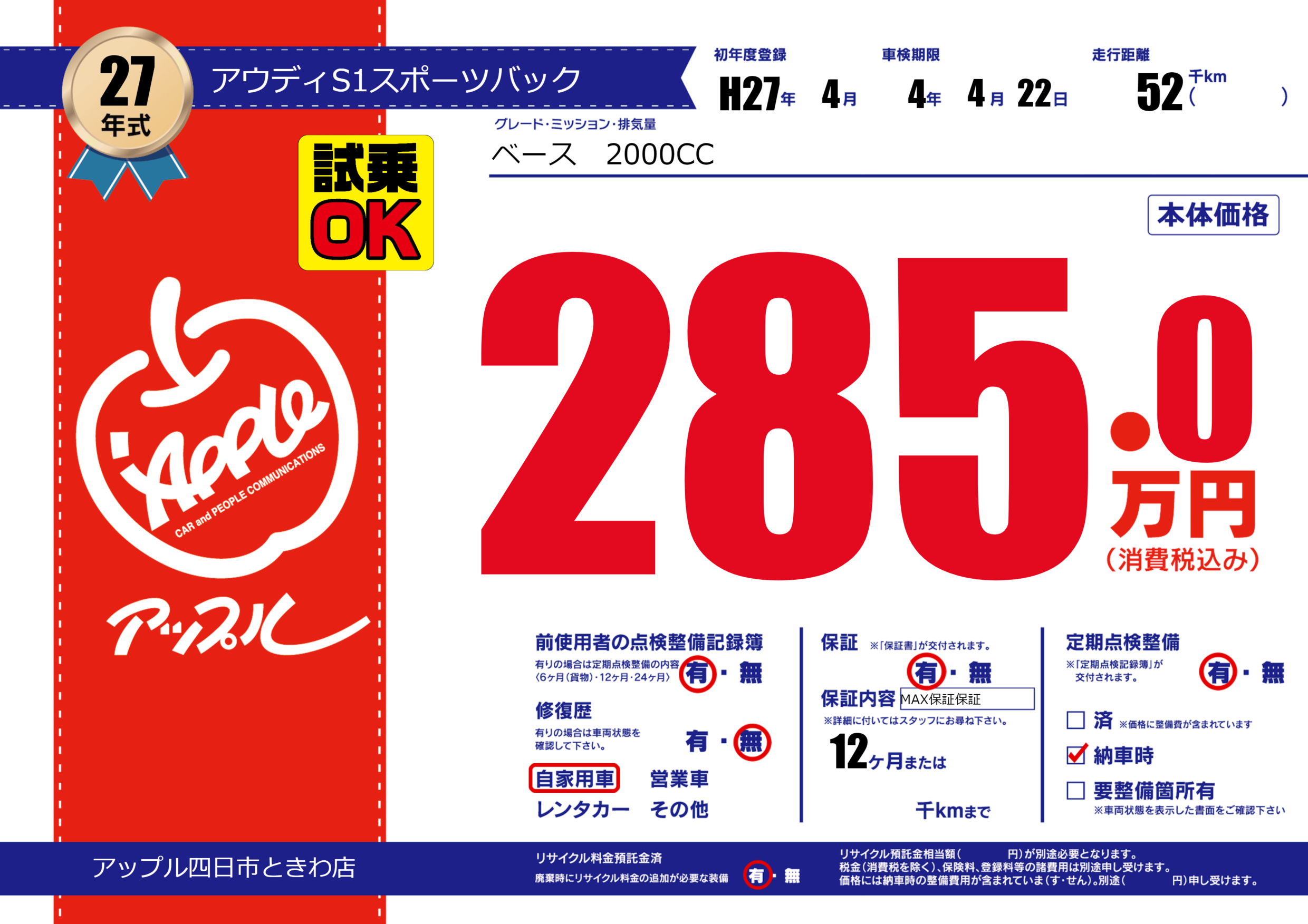 なし | 車検制限 | 4年4月22月 |