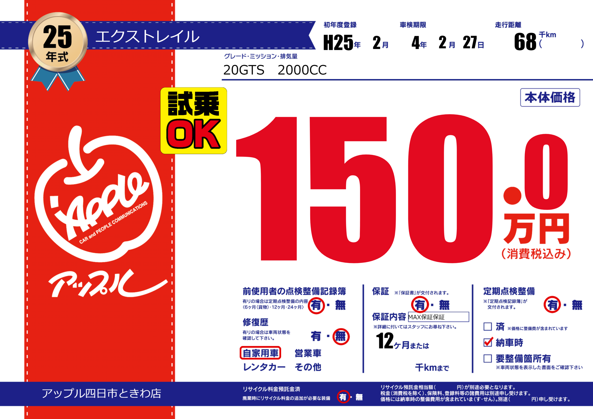 | 車名 | エクストレイル | グレード ミッション 排気量 |