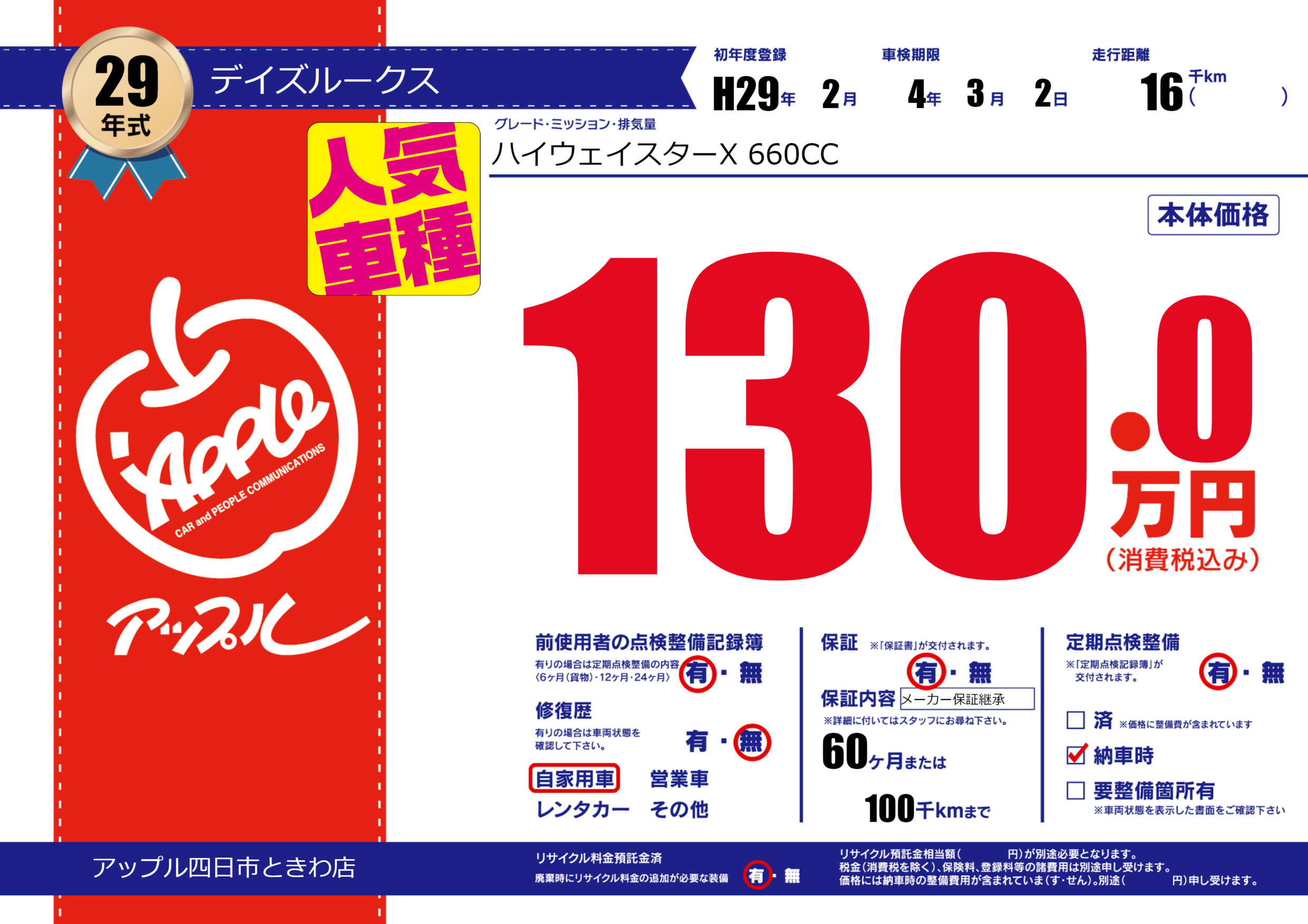 | 初年度登録 | H29年2月 | ||