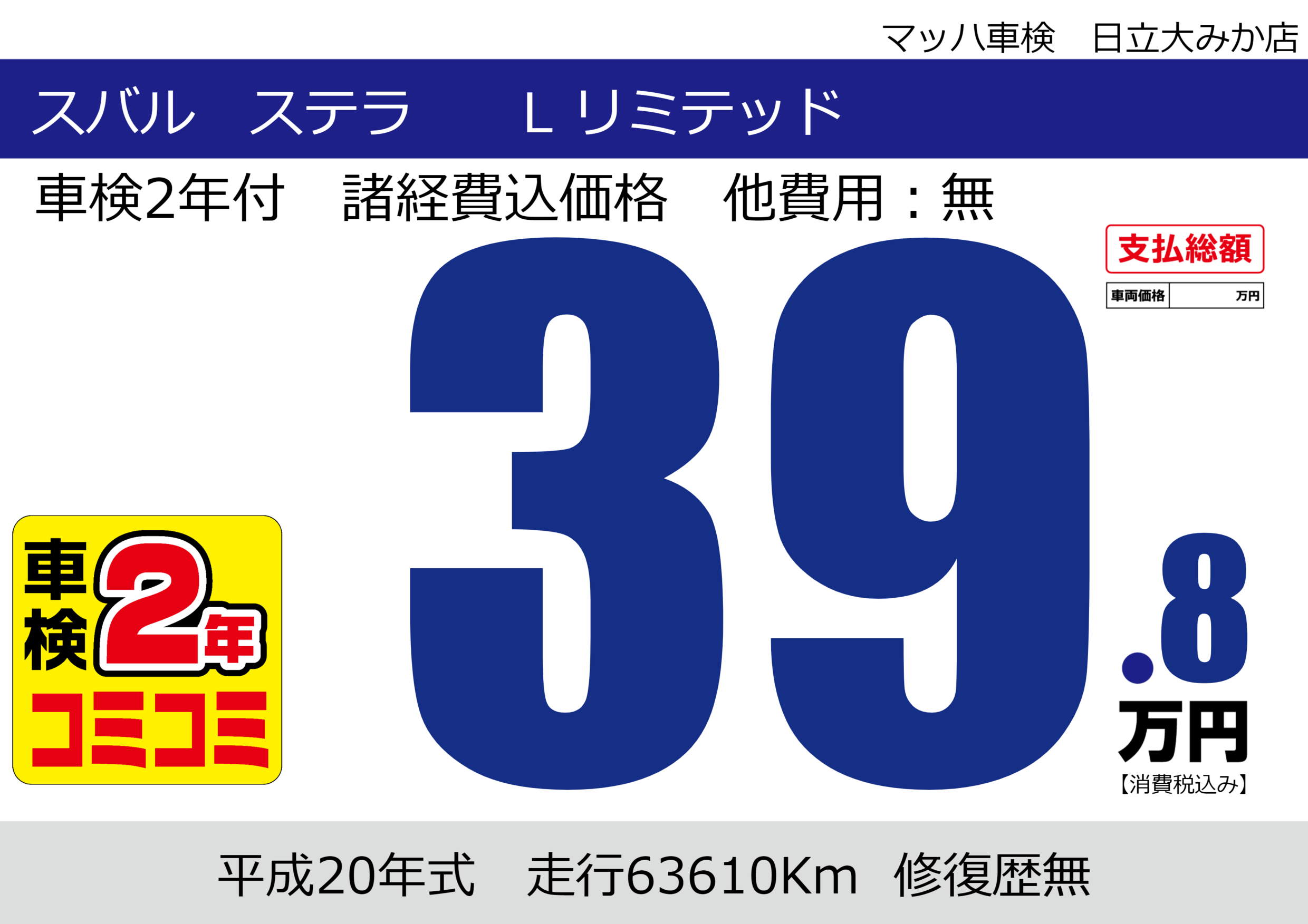 | 車名 | スバル ステラ L リミテッド | グレード ミッション 排気量 |
