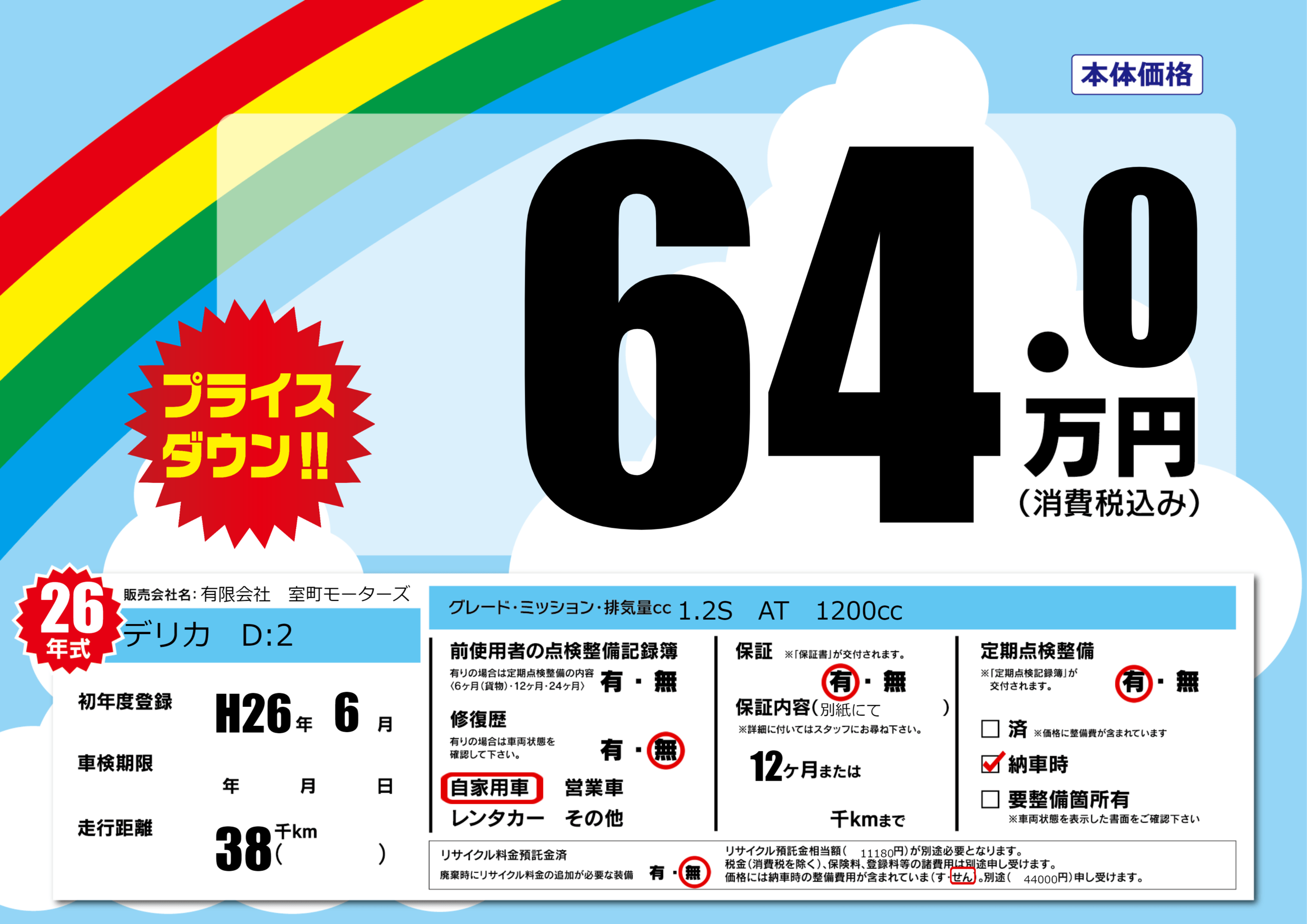 | 車名 | デリカ D:2 | グレード ミッション 排気量 |