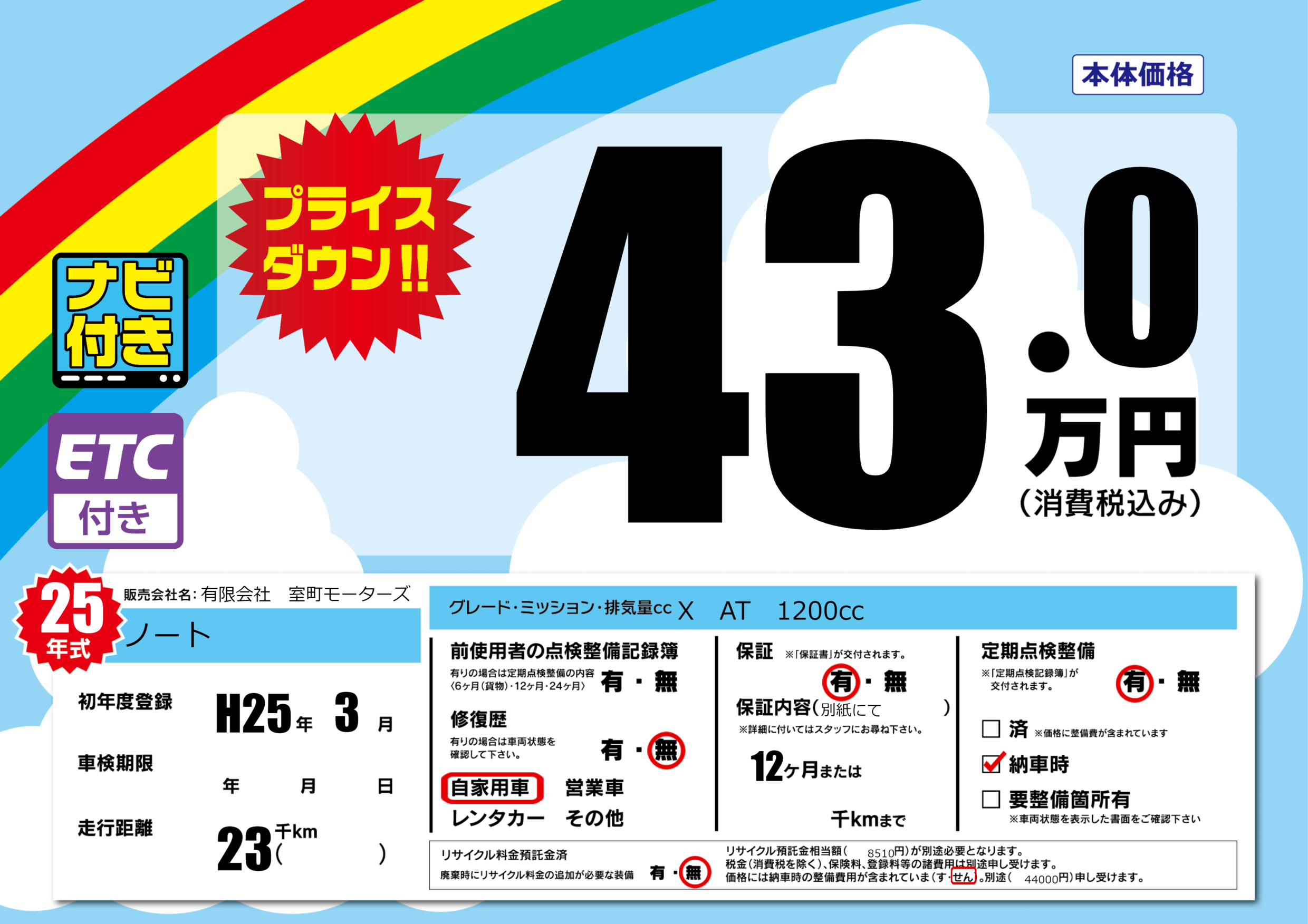 | 走行キロ | 2.3万km | 初年度登録 | H25年3月 |