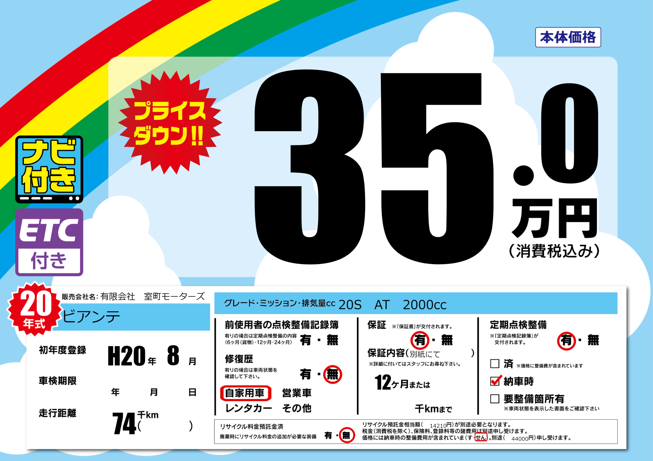 | 車名 | ビアンテ | グレード ミッション 排気量 |