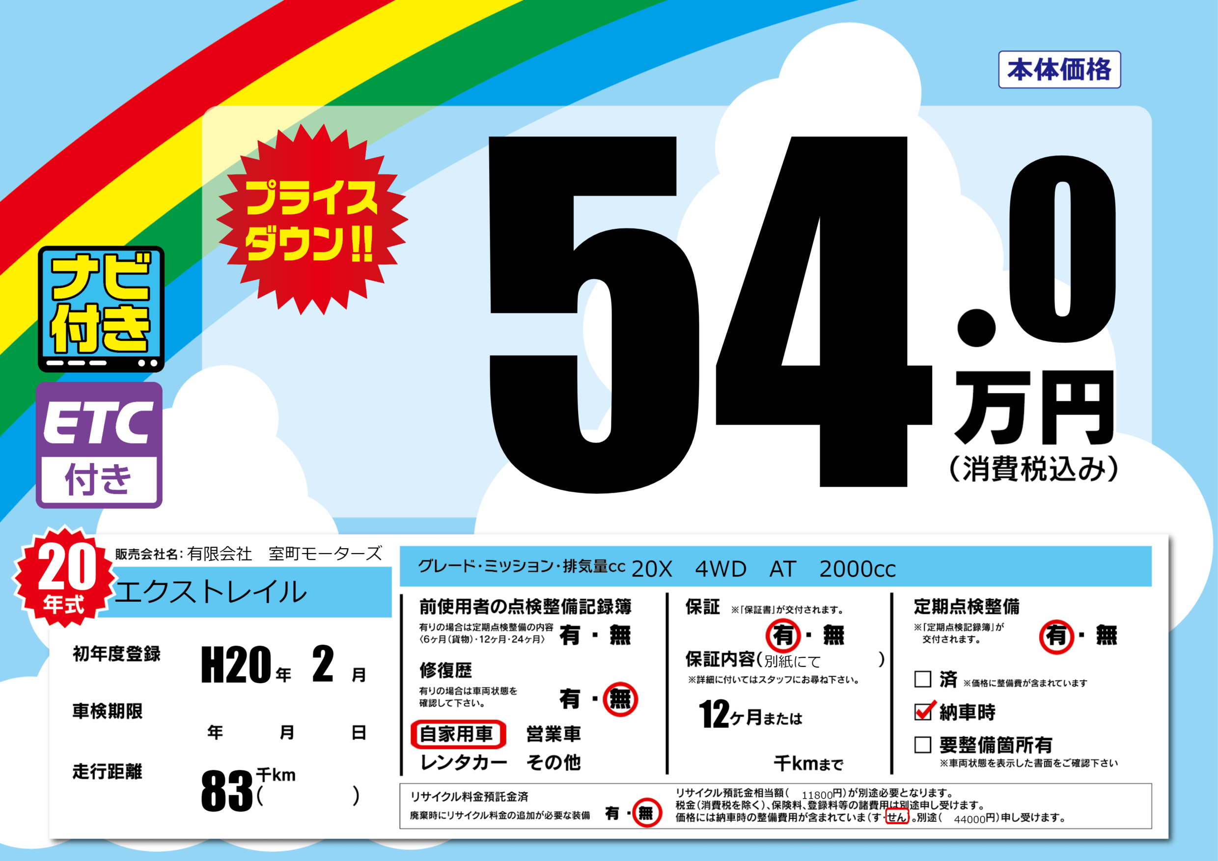 | 車名 | エクストレイル | グレード ミッション 排気量 |