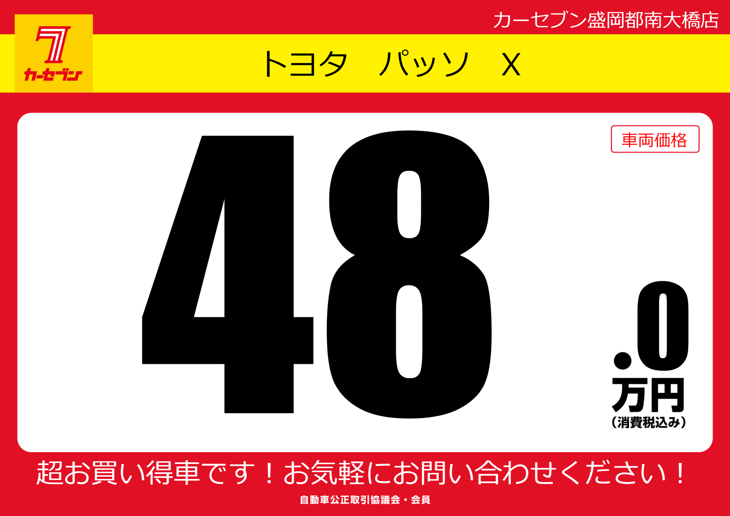 | 車名 | トヨタ パッソ X | グレード ミッション 排気量 |