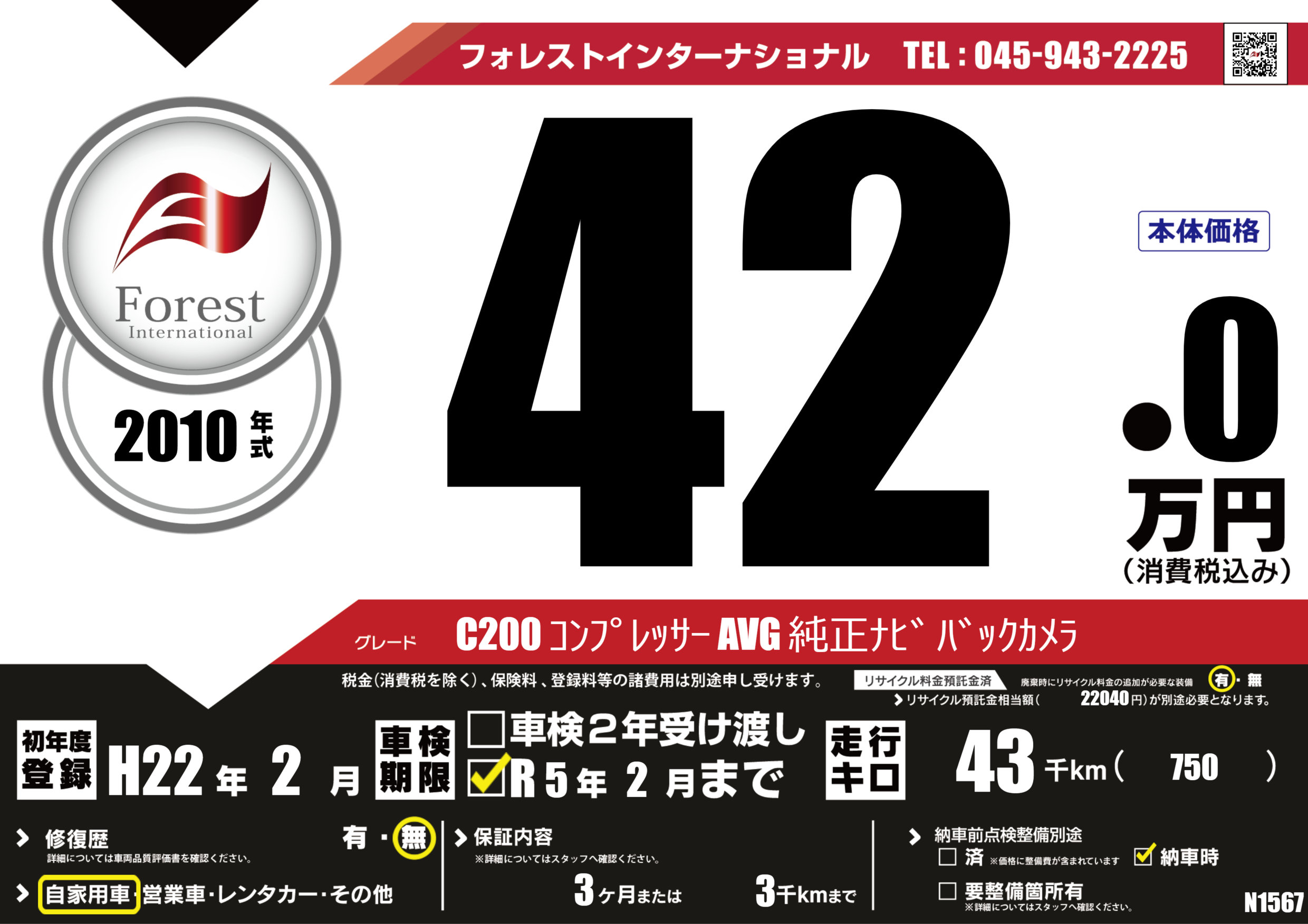 C200 コンプレッサー AVG 純正ナビ バックカメラ |