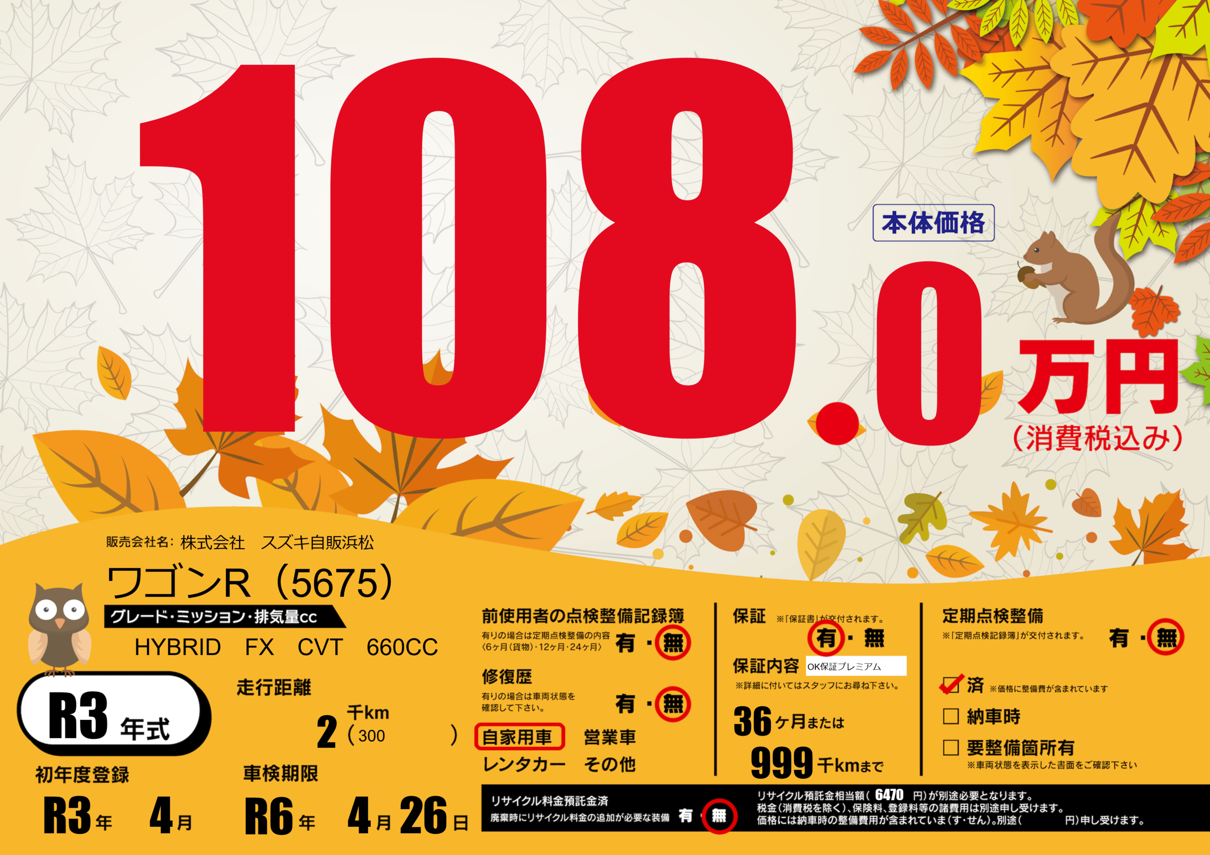 | 車名 | ワゴンR(5675) | グレード ミッション 排気量 |
