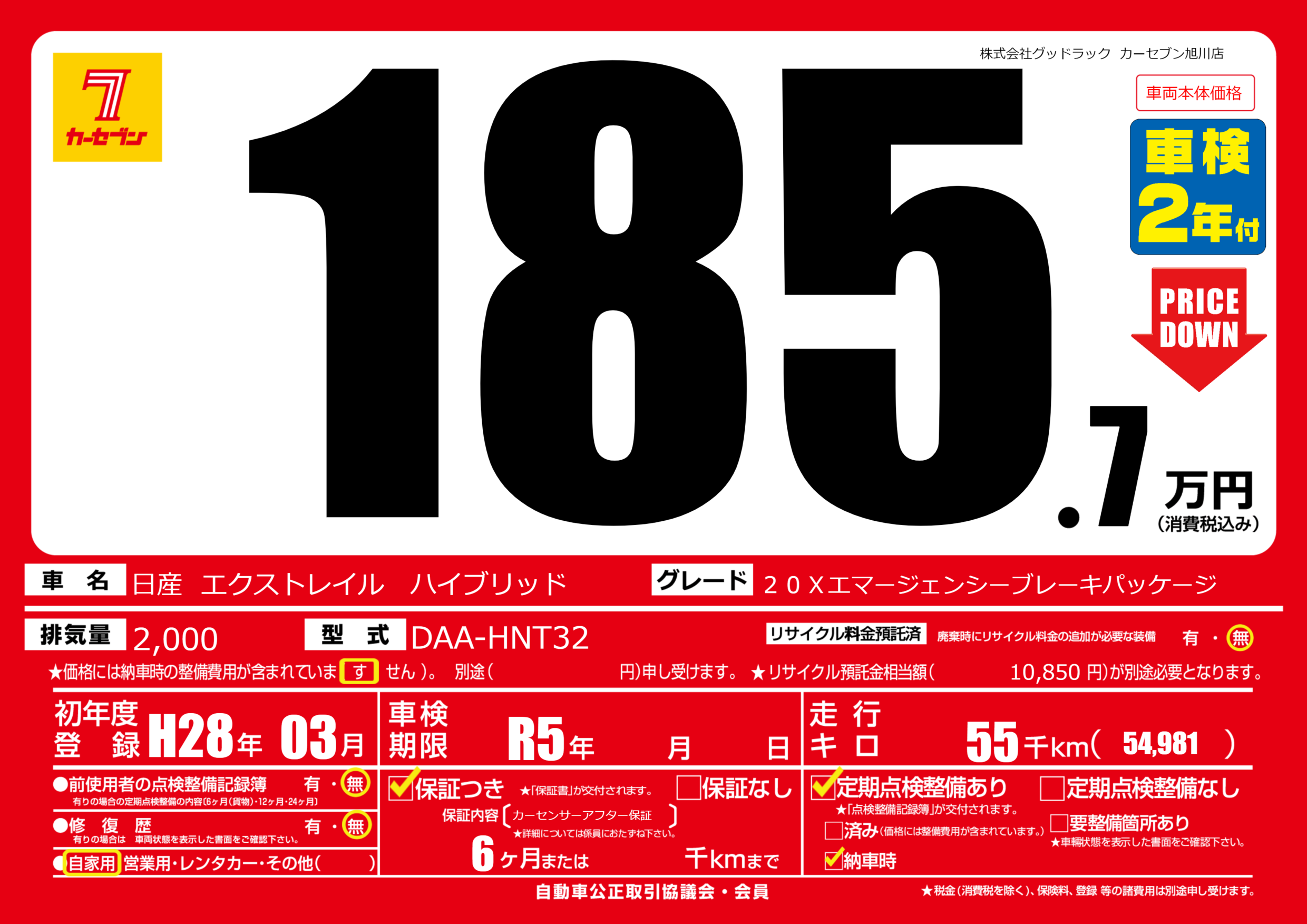| 車名 | 日産 エクストレイル ハイブリッド | グレード ミッション 排気量 |