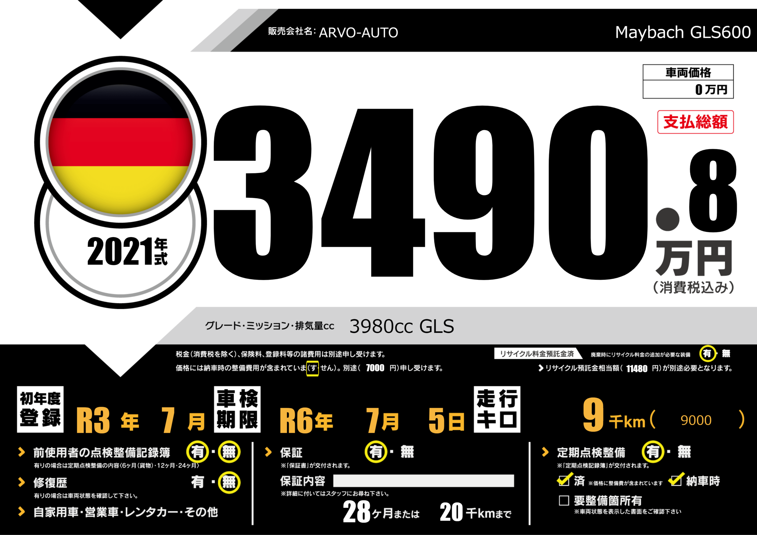 | 車名 | Maybach GLS600 | グレード ミッション 排気量 |