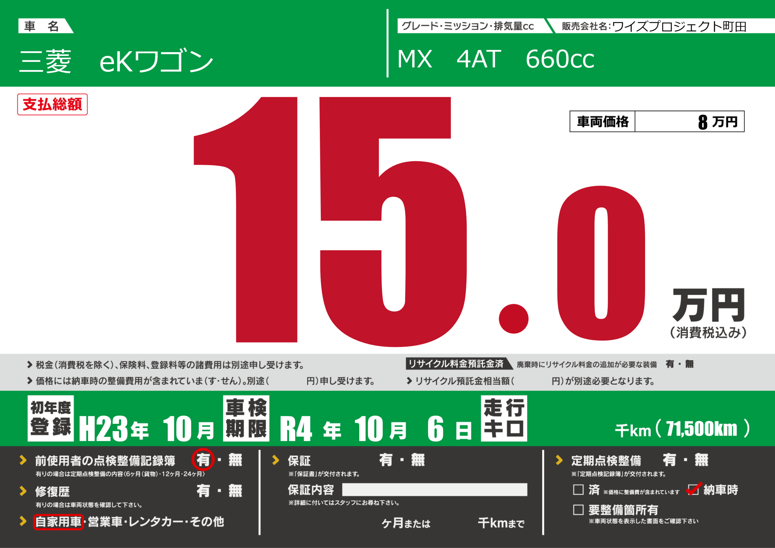 定期点検整備 | 納車時あり |