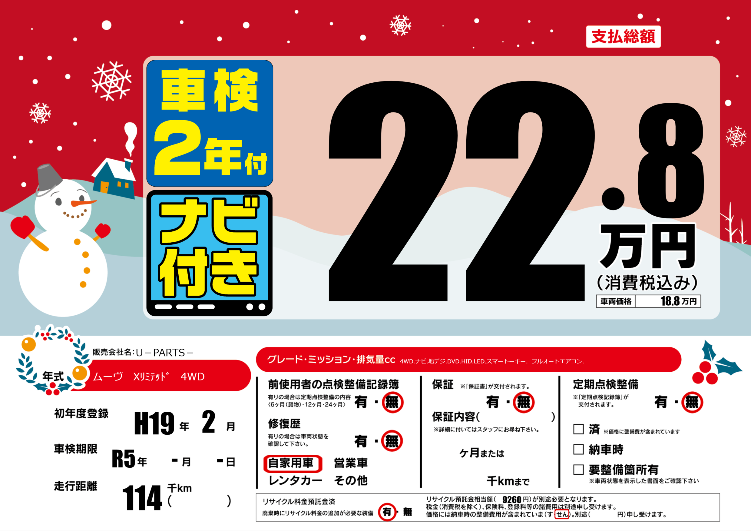 | 車名 | ムーヴ Xリミテッド 4WD | グレード ミッション 排気量 |