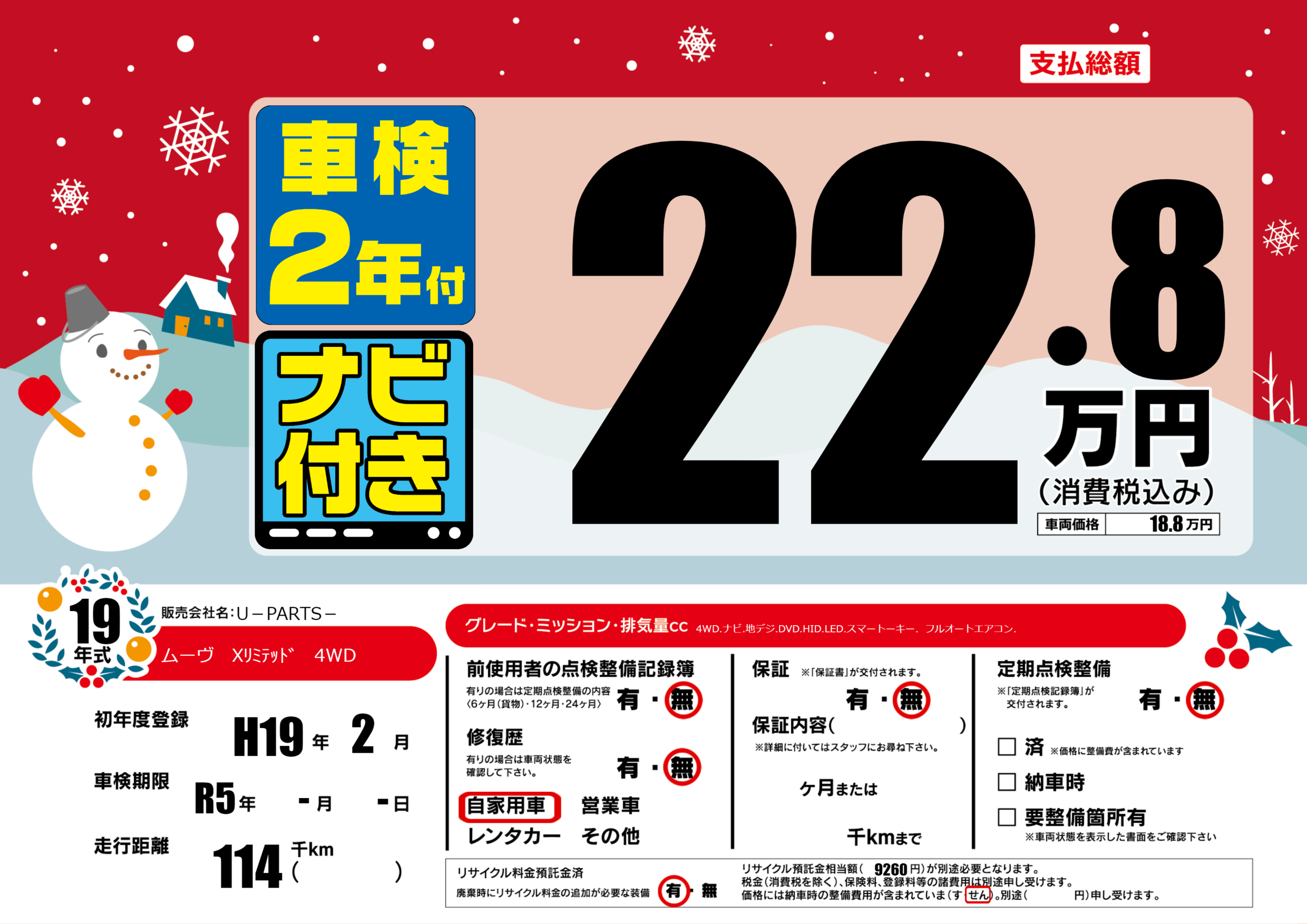 | 車名 | ムーヴ Xリミテッド 4WD | グレード ミッション 排気量 |