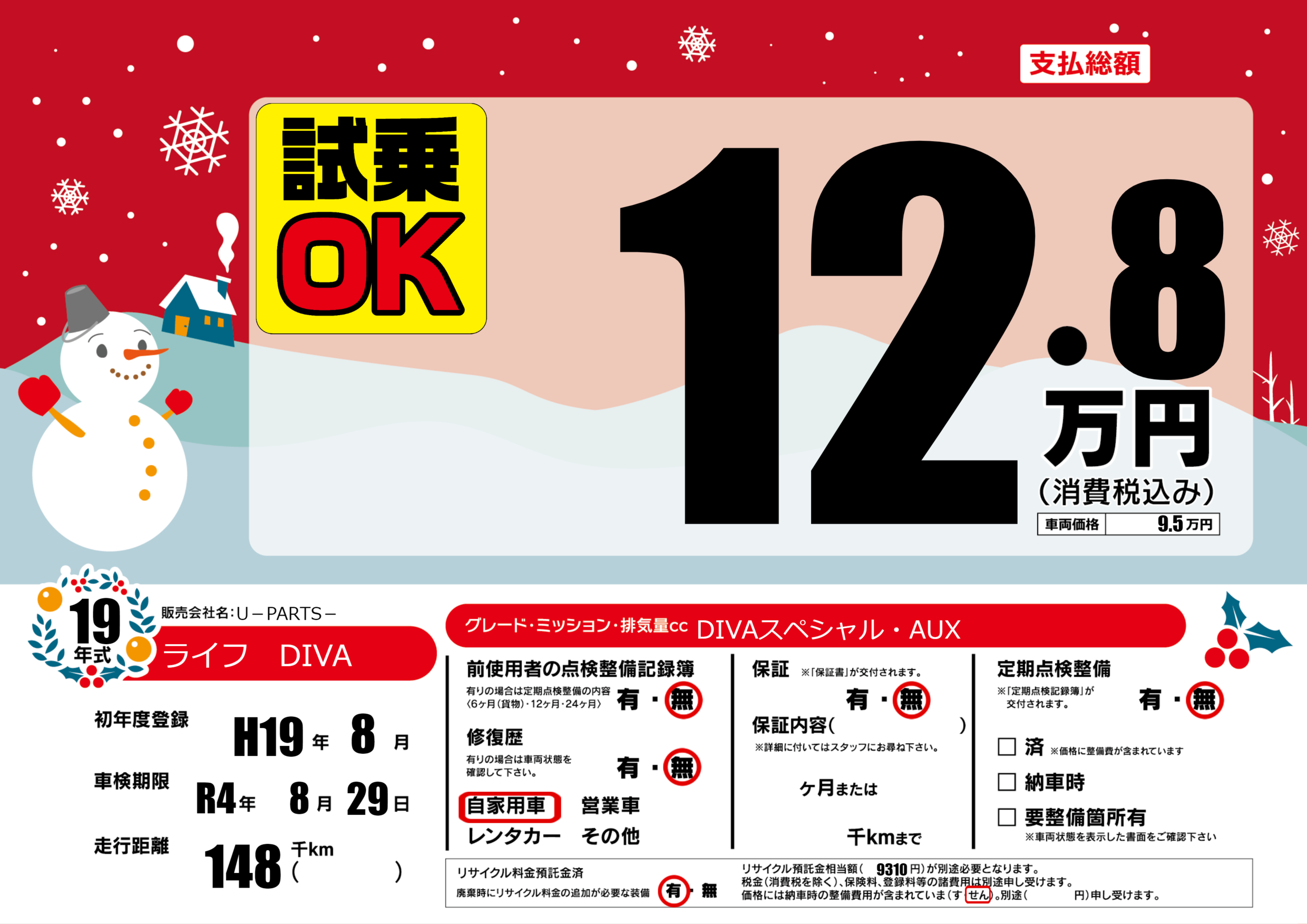 | 車名 | ライフ DIVA | グレード ミッション 排気量 |