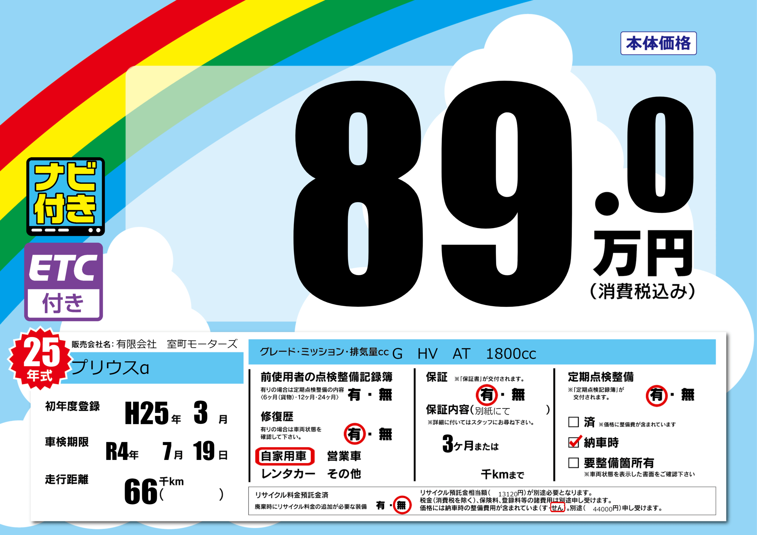 | 車名 | プリウスα | グレード ミッション 排気量 |