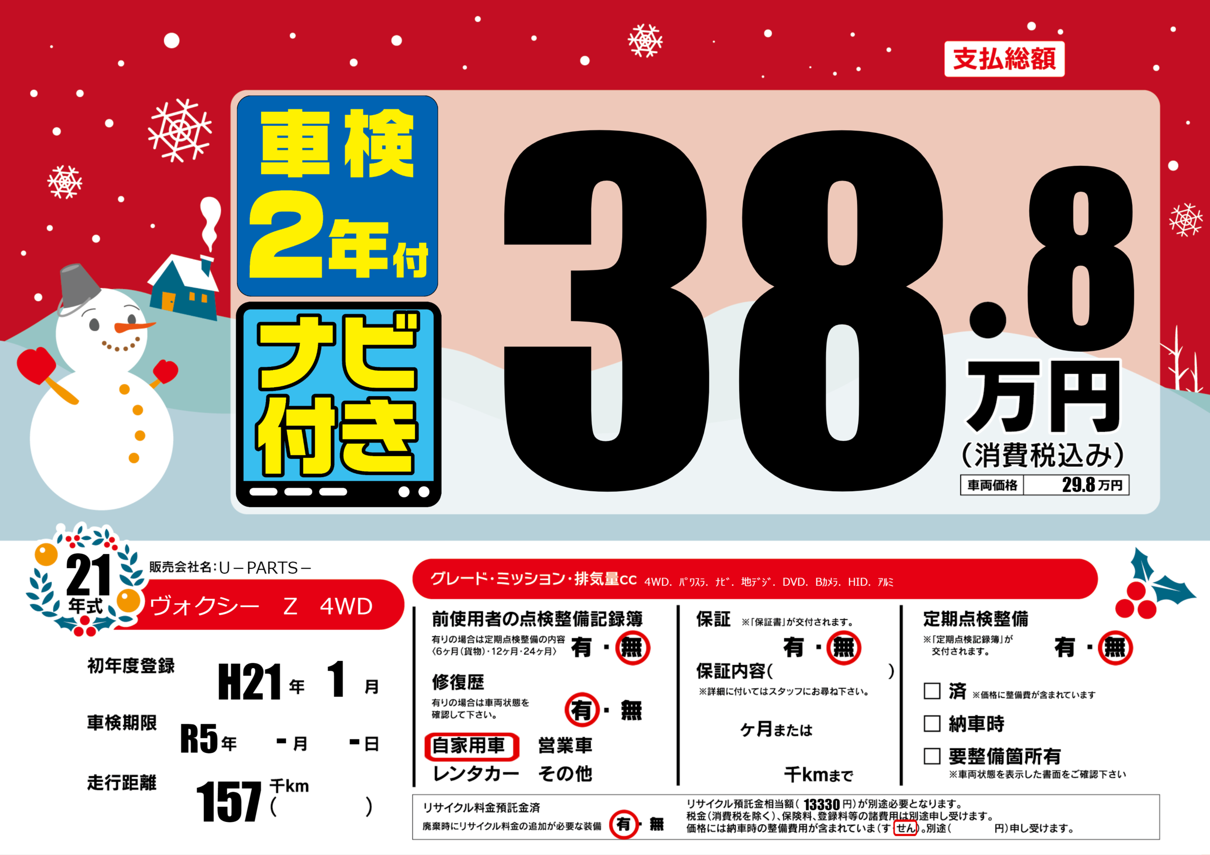 | 走行キロ | 15.7万km | 初年度登録 | H21年1月 |
